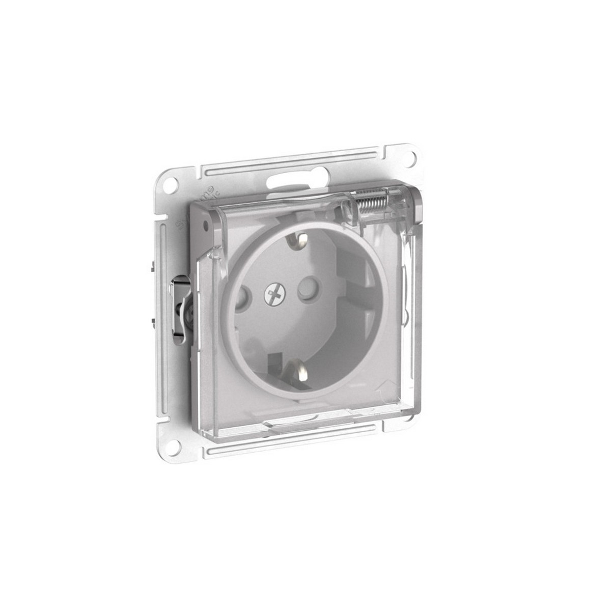 Механизм с быстрозажимными клеммами Systeme Electric (ранее Schneider Electric) серии AtlasDesign Aqua (цвет алюминий) розетки с заземлением, шторками и крышкой подходит для сетей 250 В, на ток 16А. С помощью новых быстрозажимных клемм монтаж стал намного быстрее. Теперь при подключении не требуется отвертка.