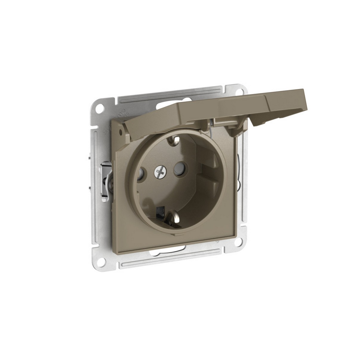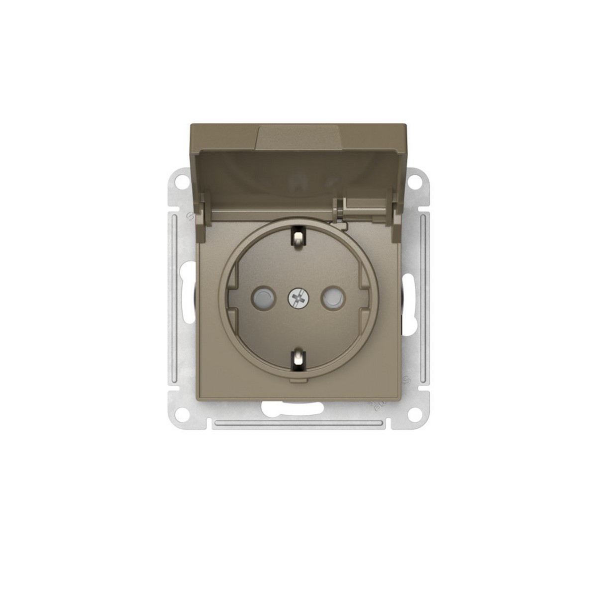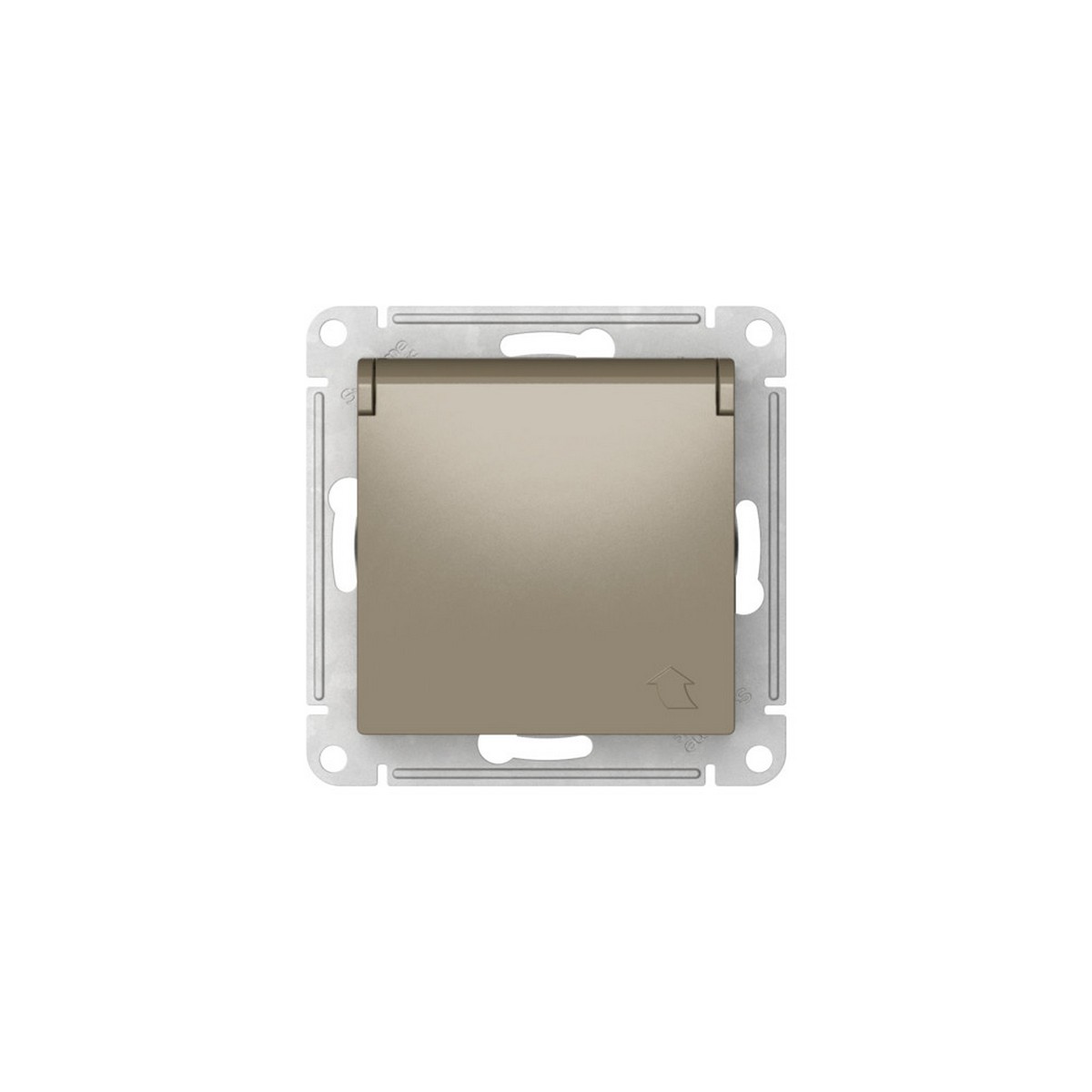 Механизм с быстрозажимными клеммами Systeme Electric (ранее Schneider Electric) серии AtlasDesign в цвете шампань розетки одинарной с заземлением, со штороками и крышкой подходит для сетей 250 В, на ток 16 А. С помощью новых быстрозажимных клемм монтаж розеток и выключателей стал намного быстрее. Теперь подключение не требует использования отвертки.
