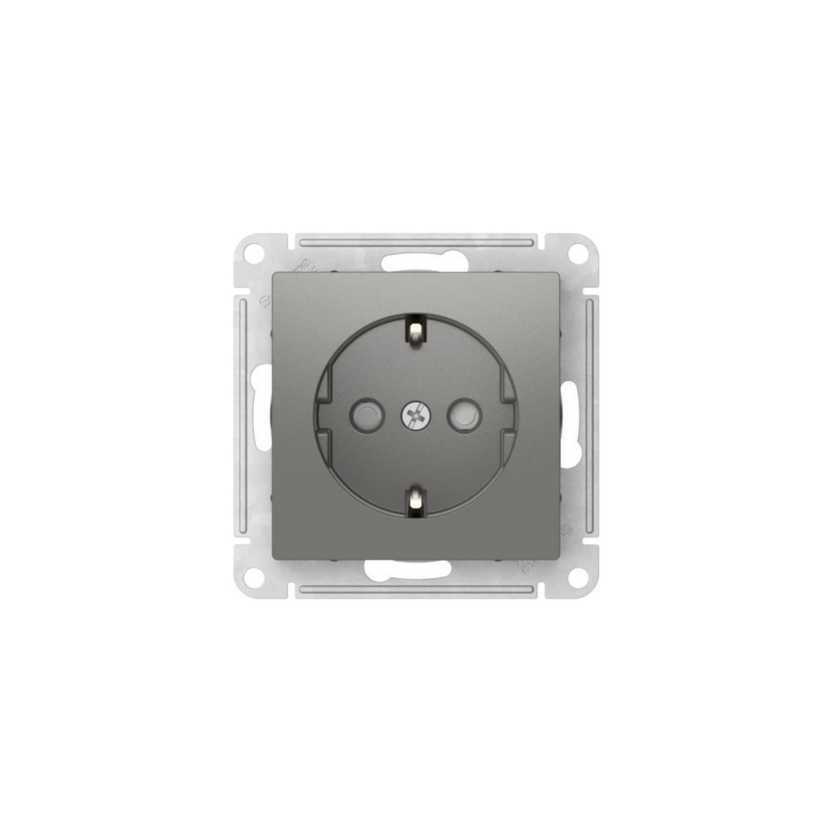 Механизм с быстрозажимными клеммами Systeme Electric (ранее Schneider Electric) серии AtlasDesign в цвете сталь розетки одинарной с заземлением и со штороками подходит для сетей 250 В, на ток 16 А. С помощью новых быстрозажимных клемм монтаж розеток и выключателей стал намного быстрее. Теперь подключение не требует использования отвертки.