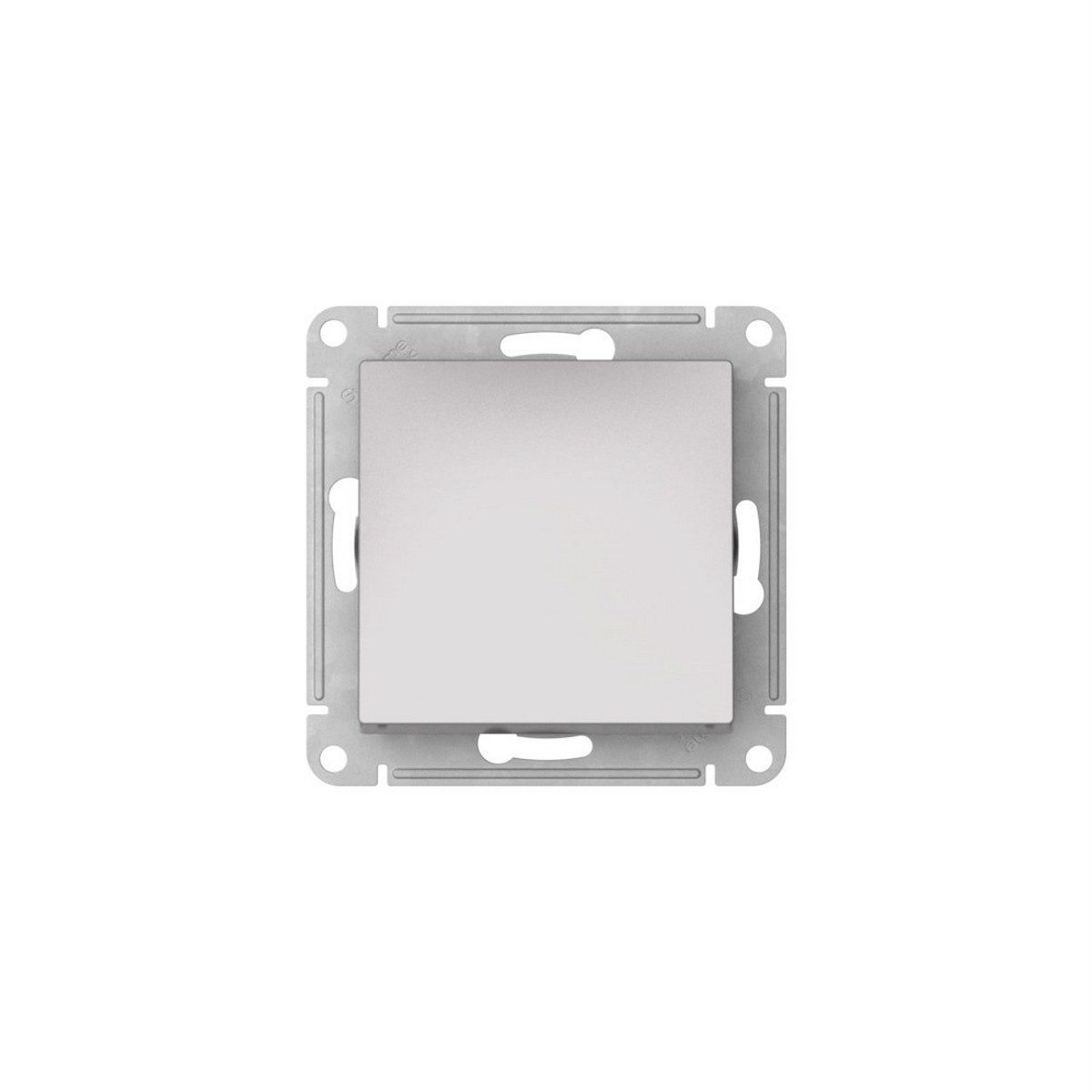 Механизм с быстрозажимными клеммами 1-клавишного выключателя в сборе Systeme Electric (ранее Schneider Electric) серии AtlasDesign в цвете алюминий подходит для сетей 250 В, на ток 10 А.