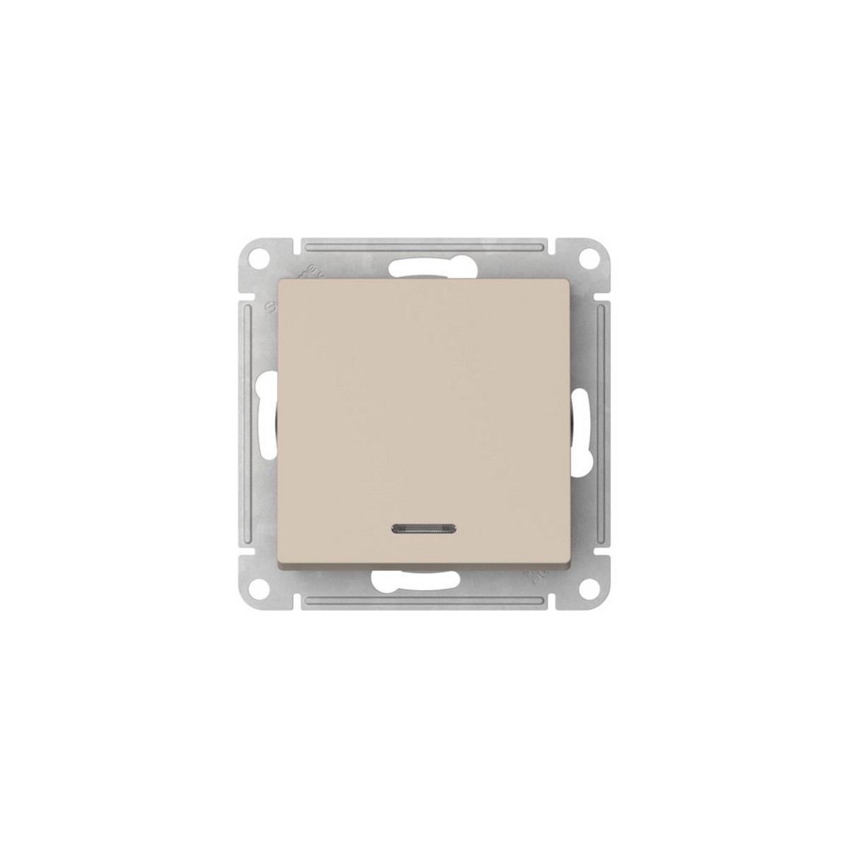 Механизм с быстрозажимными клеммами 1-клавишного выключателя в сборе Systeme Electric (ранее Schneider Electric) серии AtlasDesign в цвете песочный подходит для сетей 250 В, на ток 10 А.