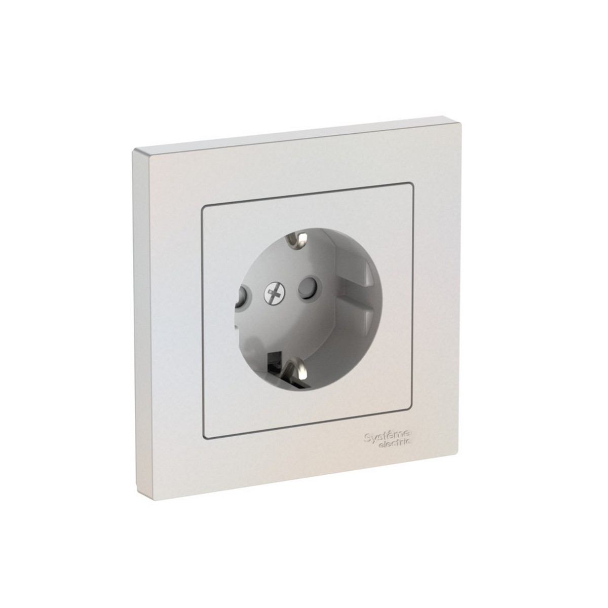 Механизм с быстрозажимными клеммами Systeme Electric (ранее Schneider Electric) серии AtlasDesign в цвете жемчуг розетки одинарной с заземлением и со штороками в сборе подходит для сетей 250 В, на ток 16 А. С помощью новых быстрозажимных клемм монтаж розеток и выключателей стал намного быстрее. Теперь подключение не требует использования отвертки.
