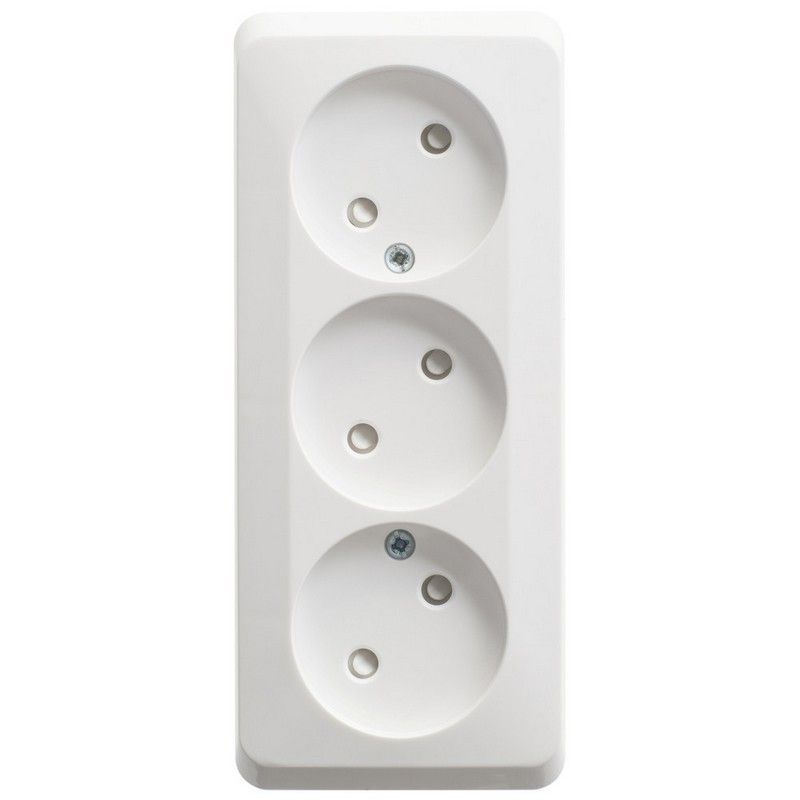 Розетка 3-ая Systeme Electric Этюд наружная, белая, с защитными шторками. Подходит для установки в помещениях и на улице. Максимальная нагрузка 16А при 250В. Обеспечивает безопасность при использовании электрических устройств. Идеальна для бытового и офисного применения.
