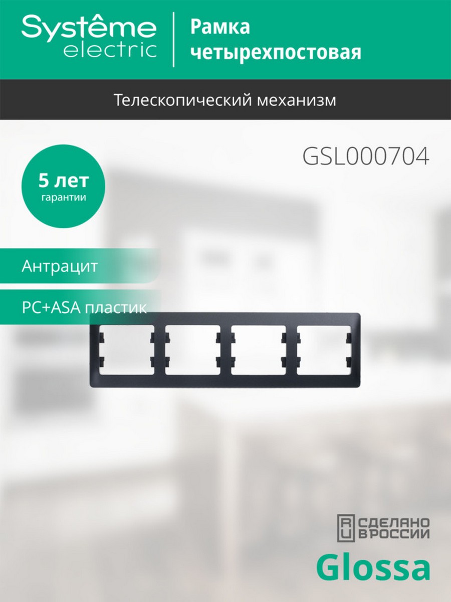 Рамка Systeme Electric Glossa Антрацит 4-я, горизонтальная GSL000704 по цене 468 руб. с фотографией и техническими характеристиками. Для покупки товара нажмите кнопку "Купить" и перейдите в корзину или позвоните по телефону 8 (495) 585 32 60 или 8 (800) 222 23 53.