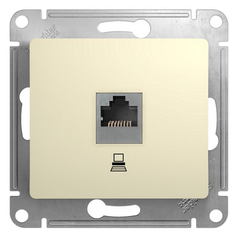 Розетка компьютерная Systeme Electric Glossa в бежевом цвете, артикул GSL000281K, предназначена для подключения сетевых устройств через RJ45 (кат. 5E). Идеально подходит для офисов и домашних сетей, обеспечивает надежное соединение и современный дизайн.