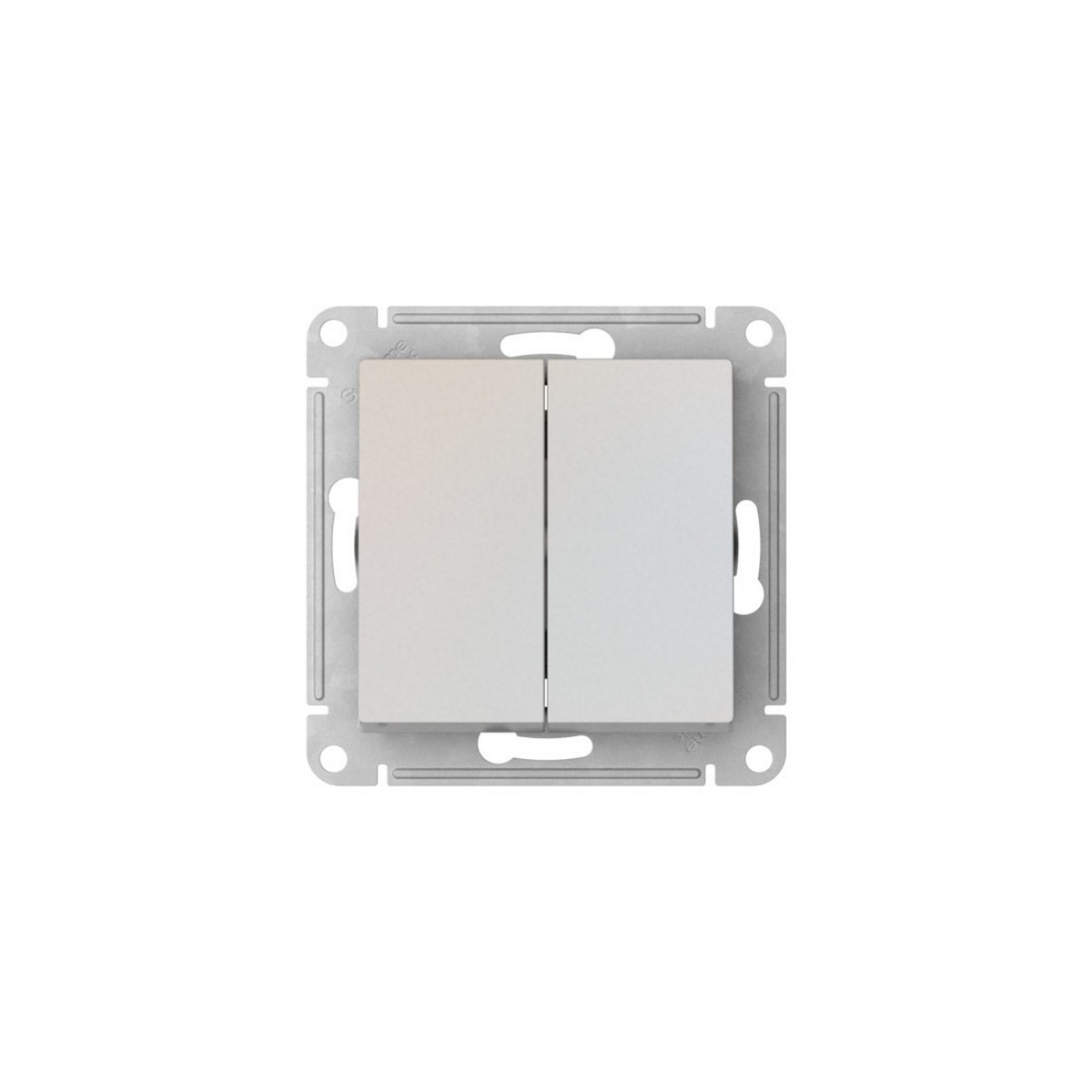 Механизм с быстрозажимными клеммами Systeme Electric (ранее Schneider Electric) серии AtlasDesign Aqua (цвет алюминий) 2-клавишного переключателя подходит для сетей 250 В, на ток 10А. С помощью новых быстрозажимных клемм монтаж стал намного быстрее. Теперь при подключении не требуется отвертка.