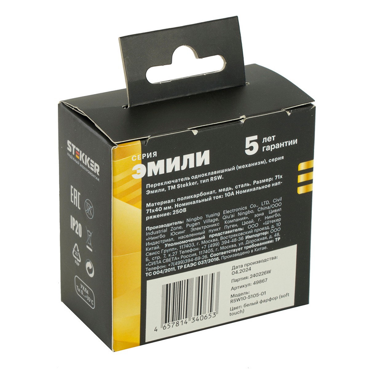 Переключатель 1-клавишный STEKKER Эмили RSW10-5105-01 белый фарфор soft touch 49867 по цене 260 руб. с фотографией и техническими характеристиками. Для покупки товара нажмите кнопку "Купить" и перейдите в корзину или позвоните по телефону 8 (495) 585 32 60 или 8 (800) 222 23 53.