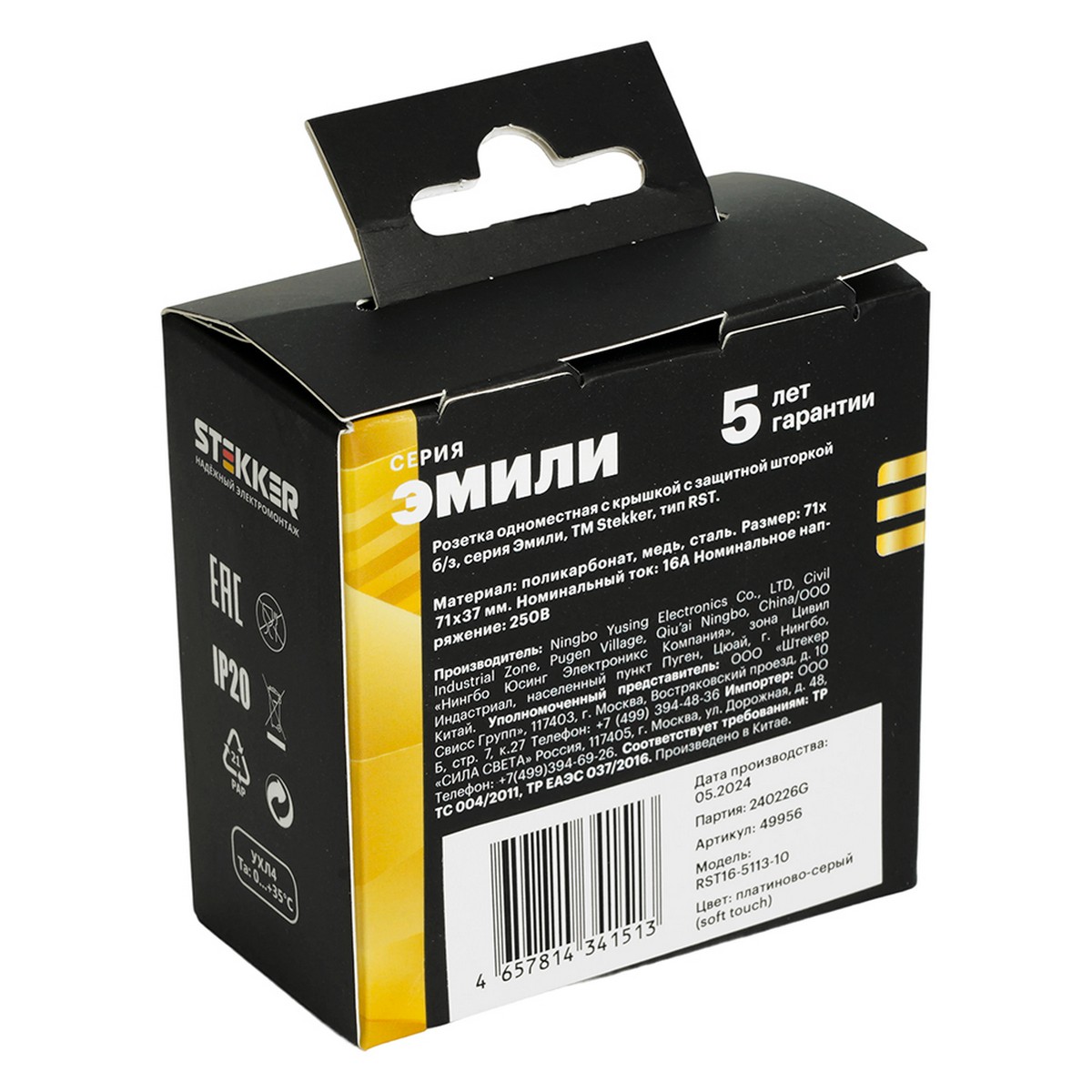 Розетка 1-ая с крышкой с защ. штор б/з STEKKER Эмили RST16-5113-10 платиново-серый soft touch 49956 по цене 297 руб. с фотографией и техническими характеристиками. Для покупки товара нажмите кнопку "Купить" и перейдите в корзину или позвоните по телефону 8 (495) 585 32 60 или 8 (800) 222 23 53.