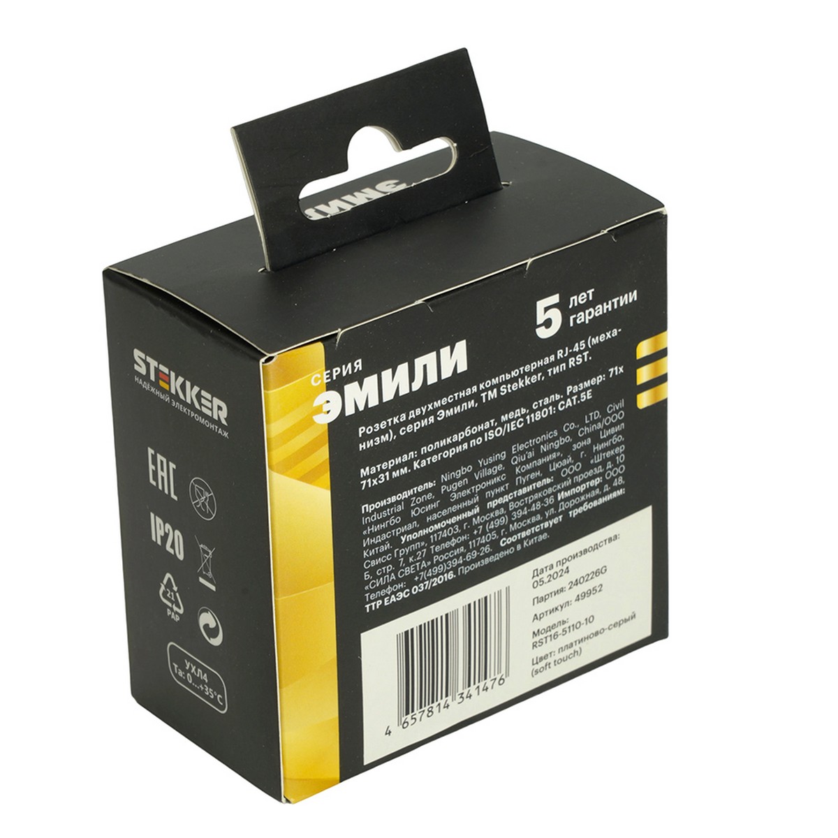 Розетка компьютерная 2-ая RJ-45 STEKKER Эмили RST00-5111-10 платиново-серый soft touch 49952 по цене 401 руб. с фотографией и техническими характеристиками. Для покупки товара нажмите кнопку "Купить" и перейдите в корзину или позвоните по телефону 8 (495) 585 32 60 или 8 (800) 222 23 53.
