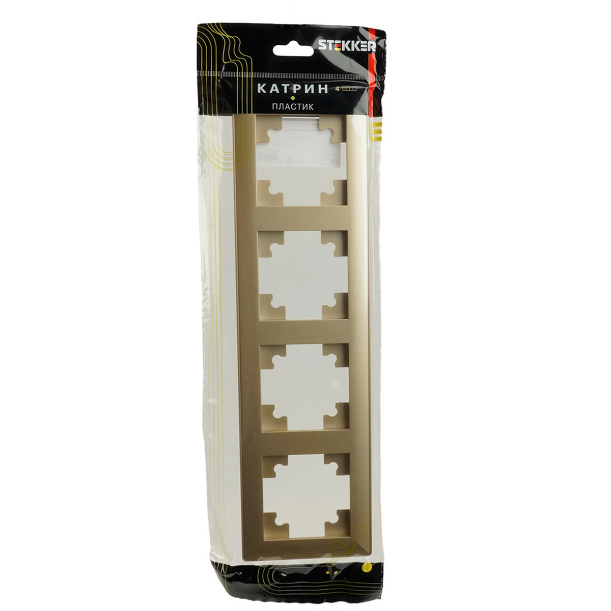 Рамка STEKKER 4-местная Катрин стекло золото PFR00-7004-08 (артикул 49609) представляет собой идеальное решение для современных интерьеров. Изготовленная из прочного ABS пластика, эта рамка выделяется своим элегантным золотым цветом, который добавляет роскоши и стиля. Размеры рамки составляют 305 мм в ширину, 83 мм в высоту и 7 мм в глубину, что делает ее универсальной для установки в различных помещениях.