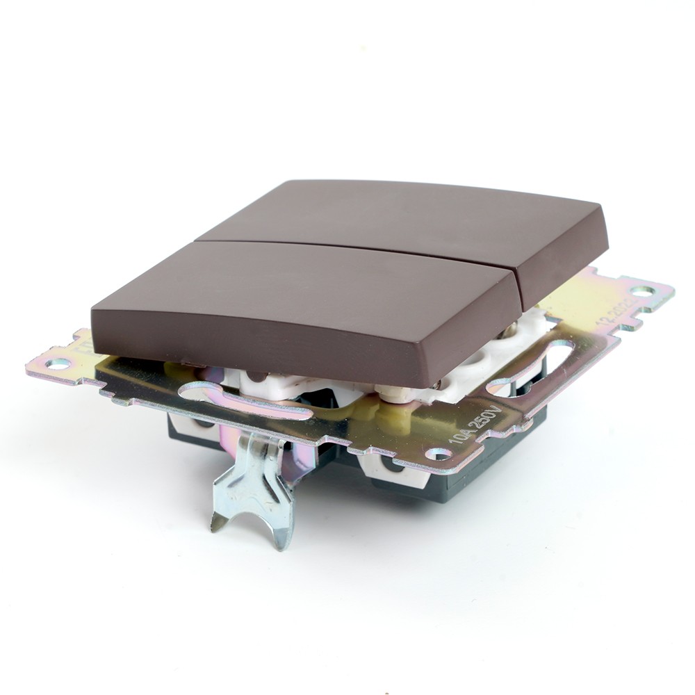 Выключатель двухклавишный STEKKER GLS10-7104-04 в цвете «шоколад» идеально подойдет для создания стильного и современного интерьера. Изготавливаемый из качественного поликарбоната и оснащенный латунными контактами, он обеспечивает надежность и долговечность в эксплуатации. Компактные размеры 55*55*35 мм и скрытый тип установки позволяют легко интегрировать его в любой дизайн помещения. Устройство обладает номинальным напряжением 250 В и током до 10 А, что делает его подходящим для большинства электрических систем в домах и офисах. Степень защиты IP20 обеспечивает защиту от пыли и легких механических воздействий. Выключатель STEKKER — это идеальное сочетание практичности и эстетики.