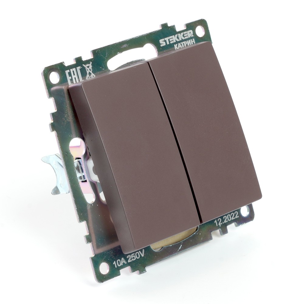 Выключатель 2-клавишный STEKKER GLS10-7104-04 250V 10А Катрин шоколад 49019 по цене 18 руб. с фотографией и техническими характеристиками. Для покупки товара нажмите кнопку "Купить" и перейдите в корзину или позвоните по телефону 8 (495) 585 32 60 или 8 (800) 222 23 53.