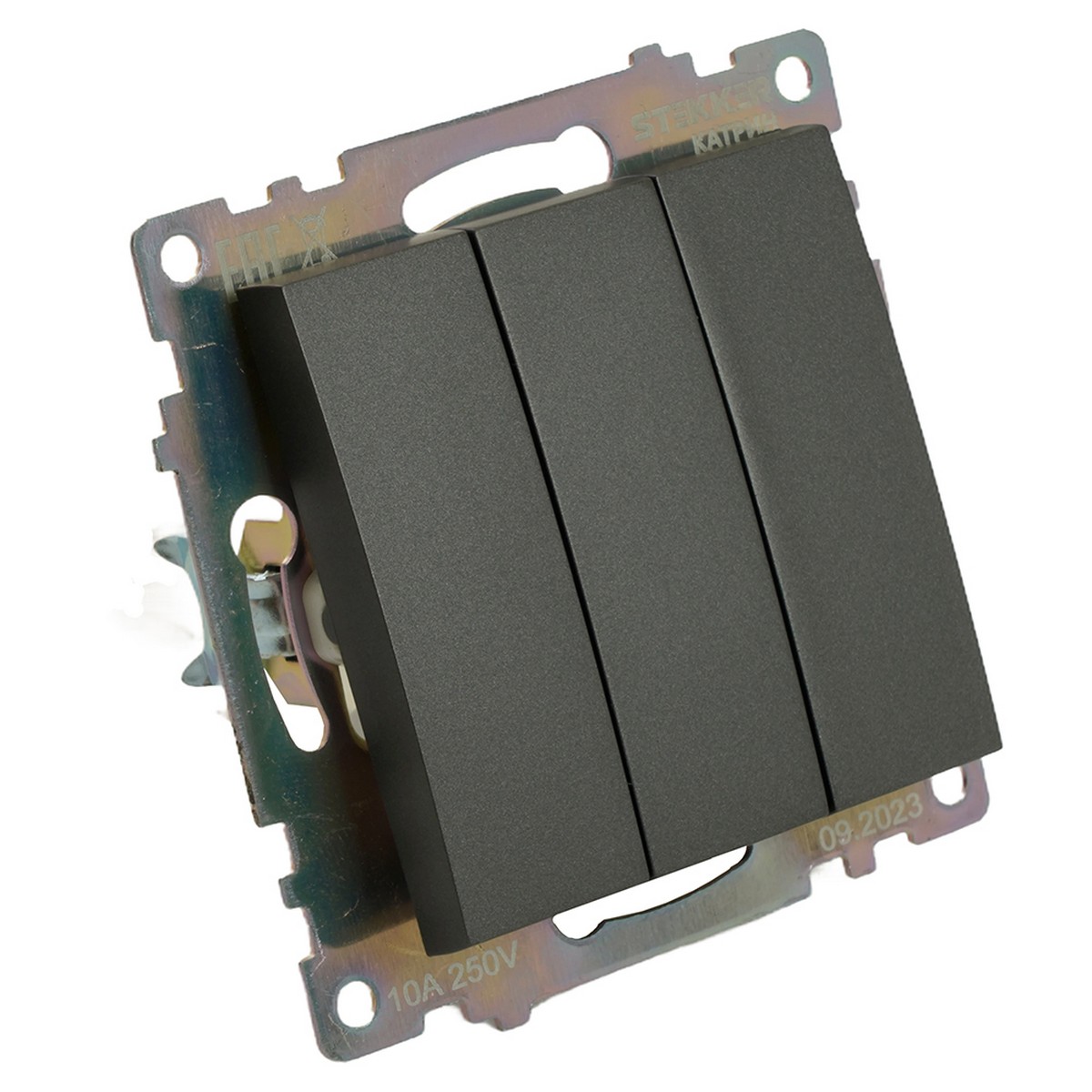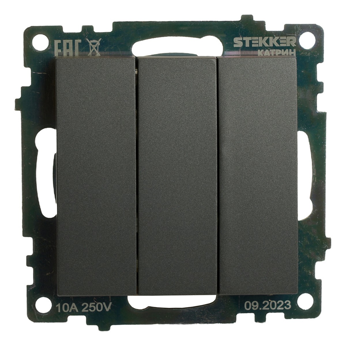 Выключатель 3-клавишный STEKKER GLS10-7108-06 250V 10А Катрин графит 49415 по цене 137 руб. с фотографией и техническими характеристиками. Для покупки товара нажмите кнопку "Купить" и перейдите в корзину или позвоните по телефону 8 (495) 585 32 60 или 8 (800) 222 23 53.