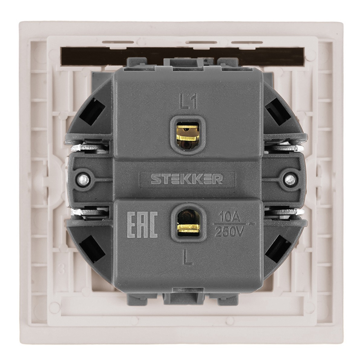 Выключатель одноклавишный STEKKER RSW10-3101-08, серия Мия, с подсветкой (пудровый жемчуг), тип установки - скрытый, размер изделия 71*71*41,5мм., цвет пудровый жемчуг, материал изделия поликарбонат, латунь, сталь. Номинальное напряжение 250 , номинальный ток 10А, 20