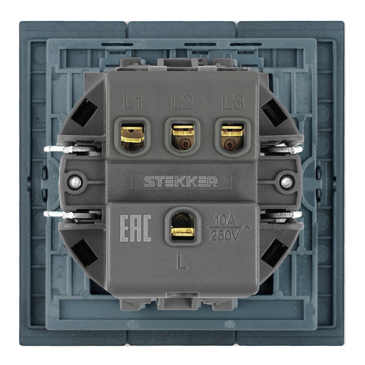 Выключатель трехклавишный STEKKER RSW10-3108-05, серия Мия тип установки - скрытый, размер изделия 71*71*41,5мм., цвет черный бархат, материал изделия поликарбонат, латунь, сталь. Номинальное напряжение 250 , номинальный ток 10А, 20