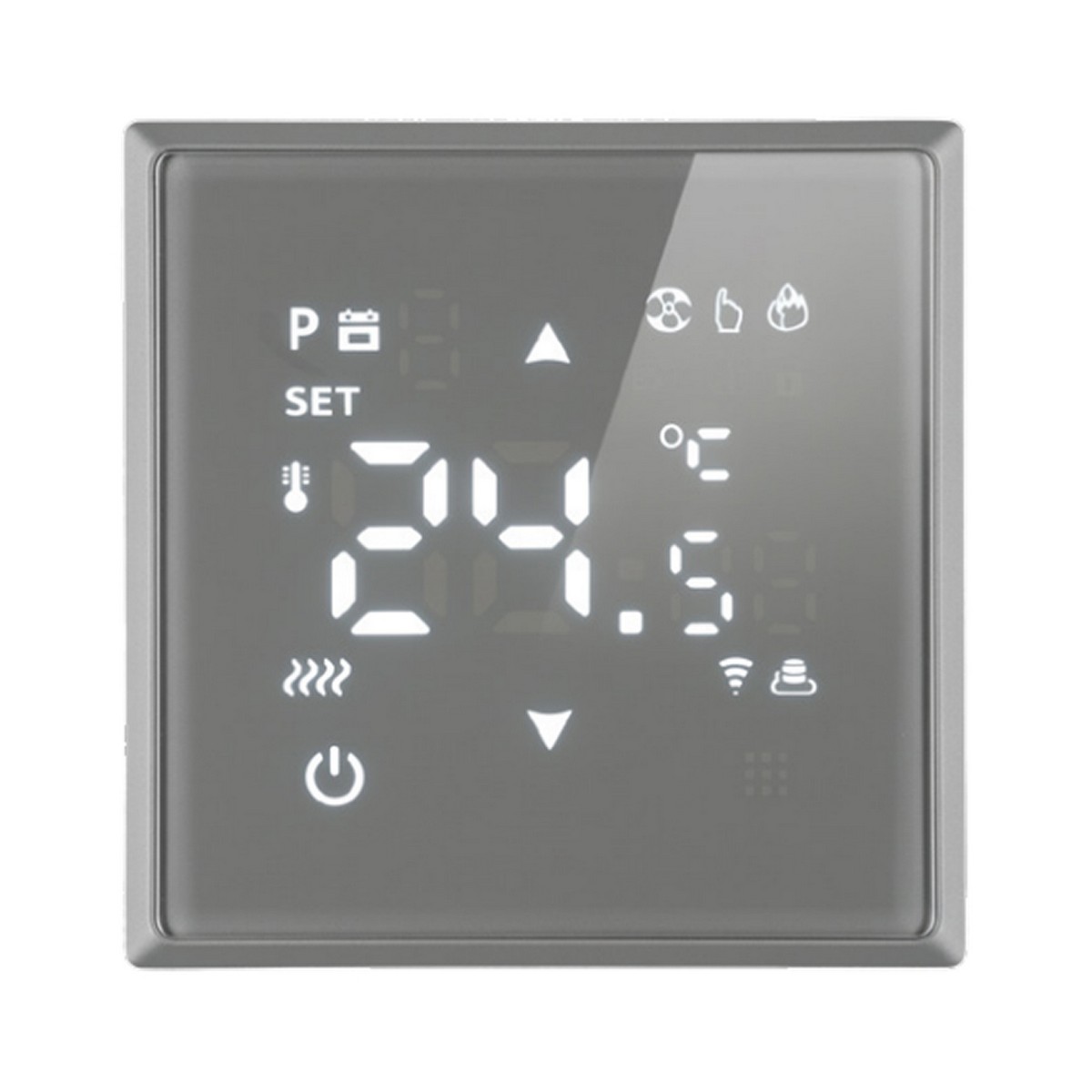 Терморегулятор сенсорный STEKKER RSW00-5119-10, серия Эмили, с подсветкой (белый), тип установки - скрытый, размер изделия 71*71*46мм., цвет платиново-серый, soft touch, материал изделия ABS пластик, латунь. Номинальное напряжение 250 , номинальный ток 16А, IP20