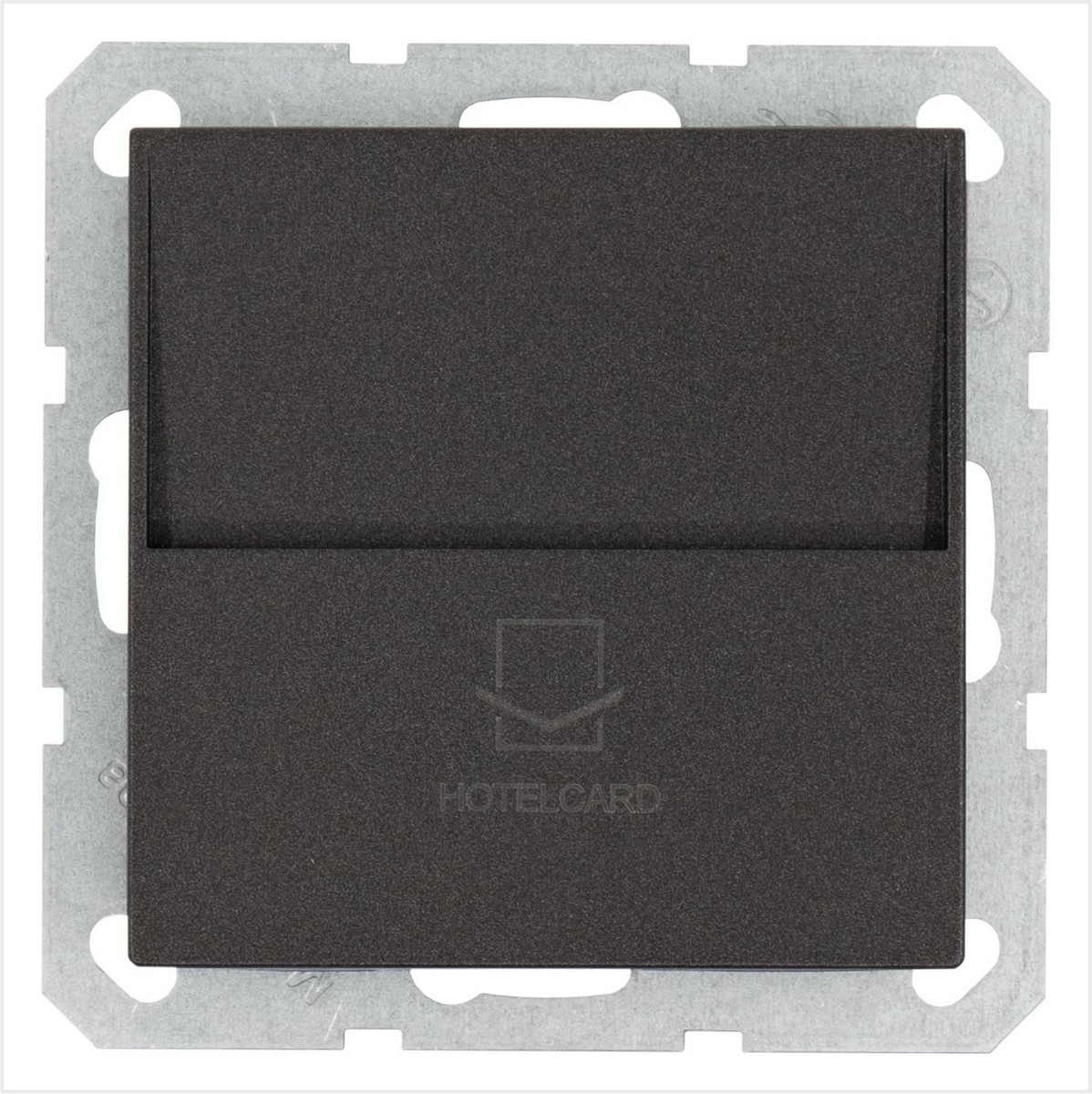 Выключатель для гостиничных номеров с выдержкой времени и подсветкой в цвете антрацит Legrand Etika. Совместимость с картой для гостиничного номера макс. шириной 54 мм Выдержка времени около 30 с после извлечения карты