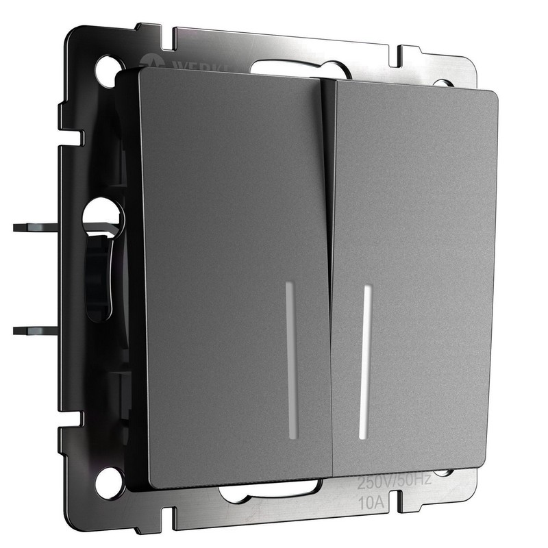 Выключатель Werkel двухклавишный проходной с подсветкой (графит матовый) W1122164 по цене 1 890 руб. с фотографией и техническими характеристиками. Для покупки товара нажмите кнопку "Купить" и перейдите в корзину или позвоните по телефону 8 (495) 585 32 60 или 8 (800) 222 23 53.