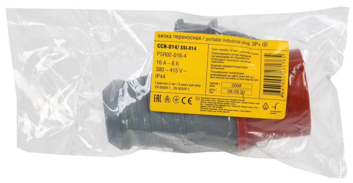 Вилка кабельная IEK 014 3Р+РЕ 16А 380В IP44 PSR02-016-4 по цене 275 руб. с фотографией и техническими характеристиками. Для покупки товара нажмите кнопку "Купить" и перейдите в корзину или позвоните по телефону 8 (495) 585 32 60 или 8 (800) 222 23 53.