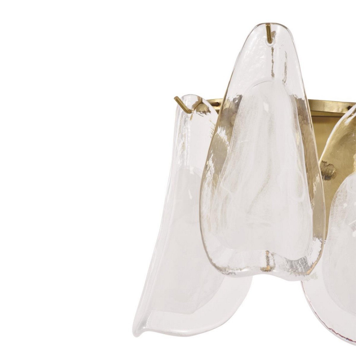 Линия PLUME станет центральным элементом любого интерьера, привлекая внимание своим изысканным дизайном. Она выполнена из высококачественного стекла ручной обработки: центральная часть белая, по краям прозрачный ободок. Бра состоит из трех рожков разной длины, каждый из которых украшен крупными стеклянными элементами. Эти элементы переливаются в свете, создавая завораживающую игру света и тени. Золотистая арматура, поддерживающая рожки, добавляет роскоши и создает яркий контраст. Эта люстра идеально подойдет для украшения гостиной, столовой или спальни в классическом стиле. Она не только обеспечивает функциональное освещение, но и добавляет в интерьер нотку элегантности и утонченности.