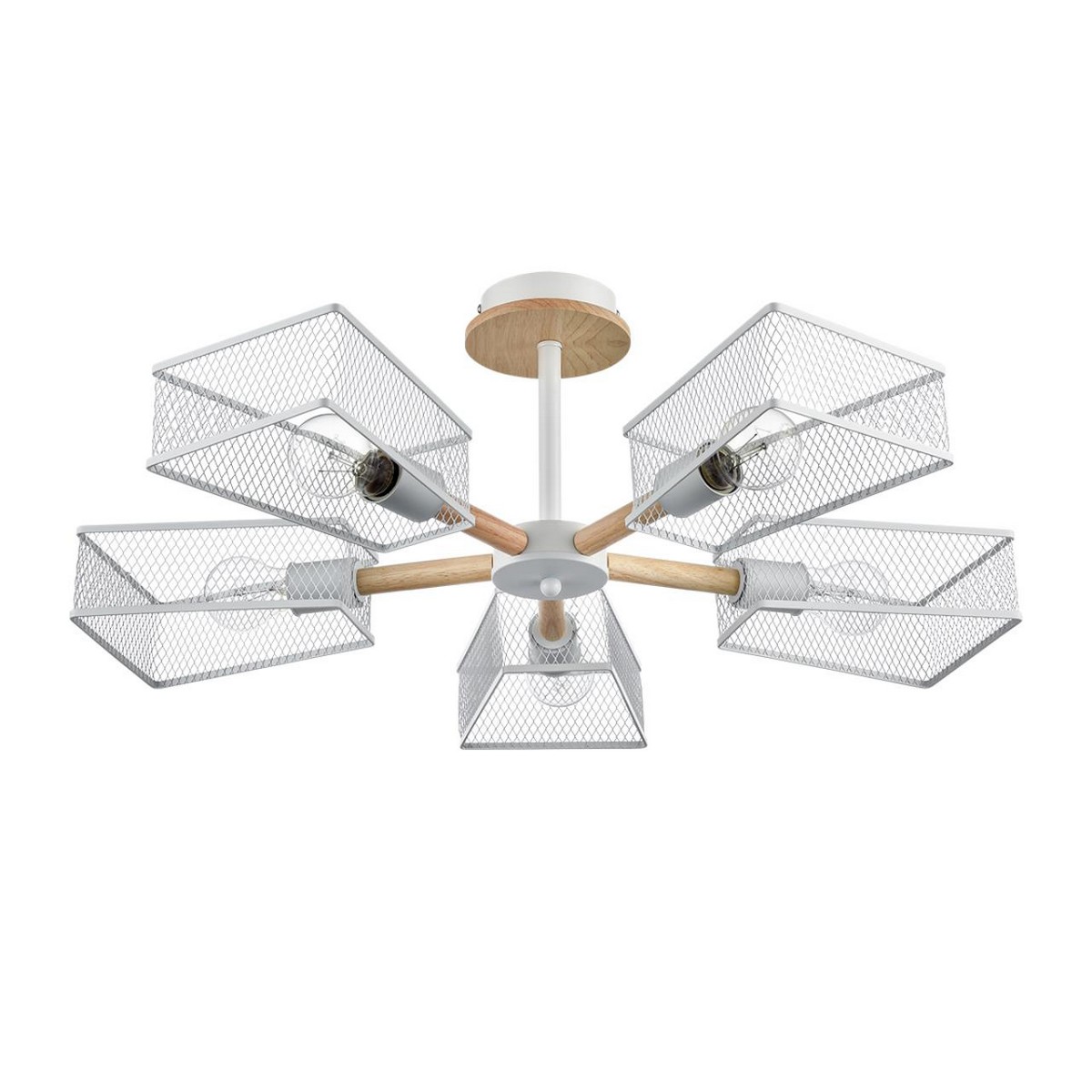 Серия светильников IRMA в стиле лофт подходит для помещений с низкими потолками. Трапециевидные плафоны из металлической сетки совершенно не скрадывают свет. Деревянный декор смягчает брутальность индустриального стиля.