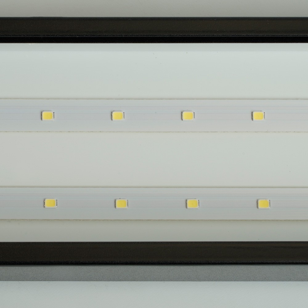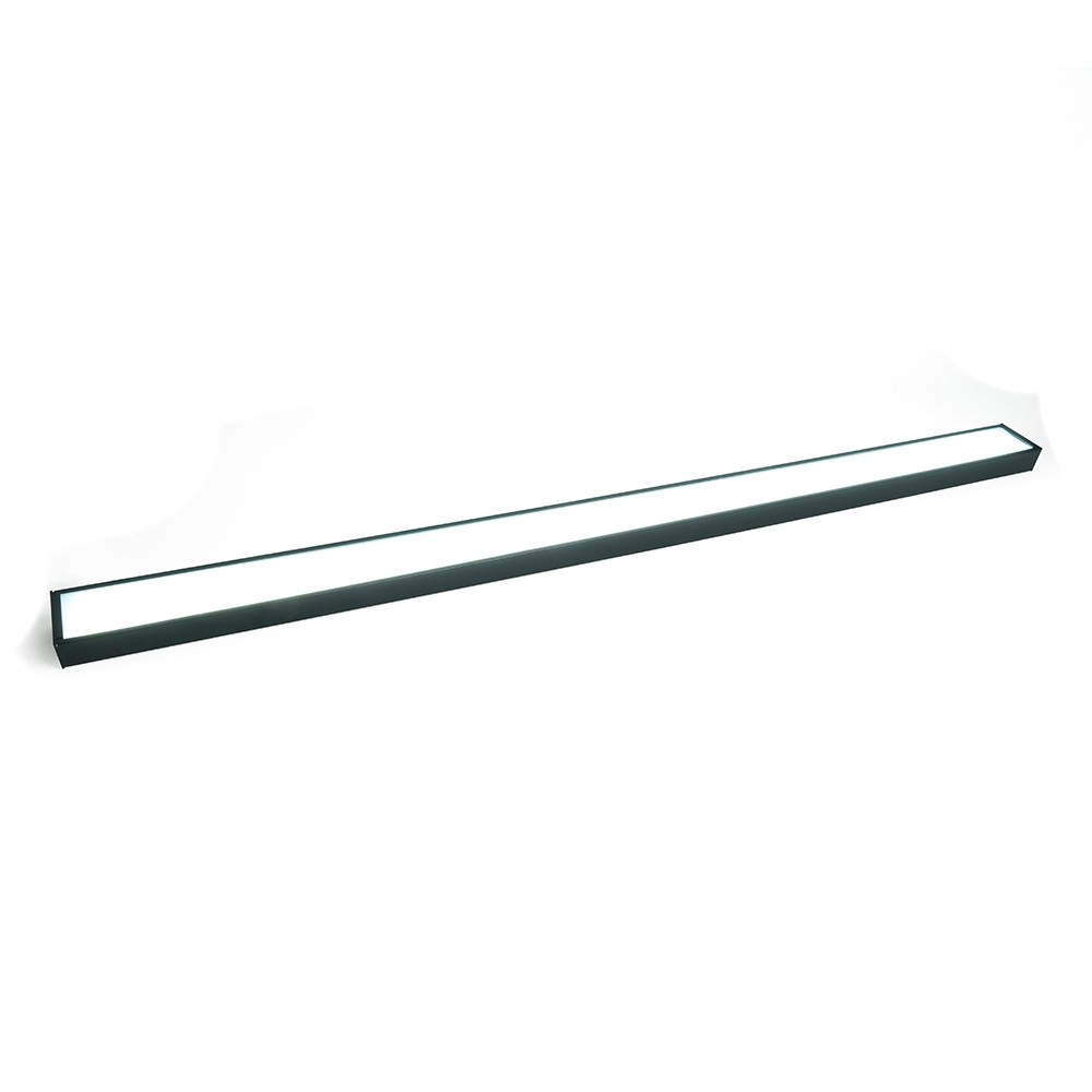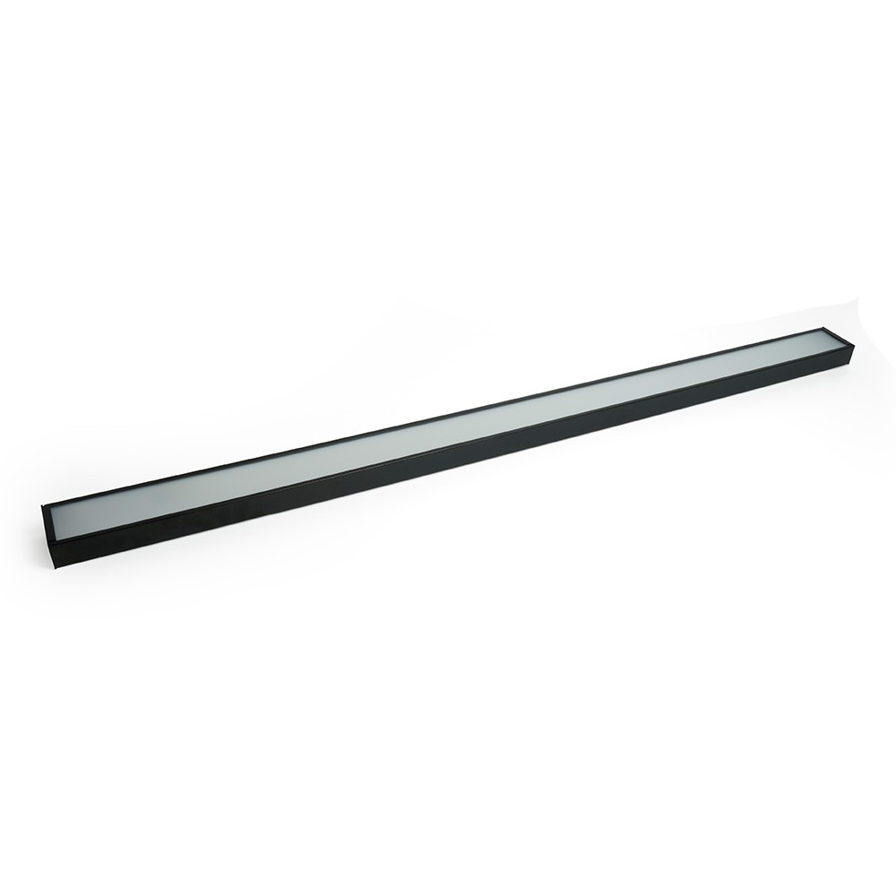 Длина светильника составляет 1200 мм, что обеспечивает равномерное распределение света. Корпус изготовлен из черного стали, что придает изделию современный вид и повышает его долговечность. Пластиковый рассеиватель способствует мягкому распространению света без ослепления.