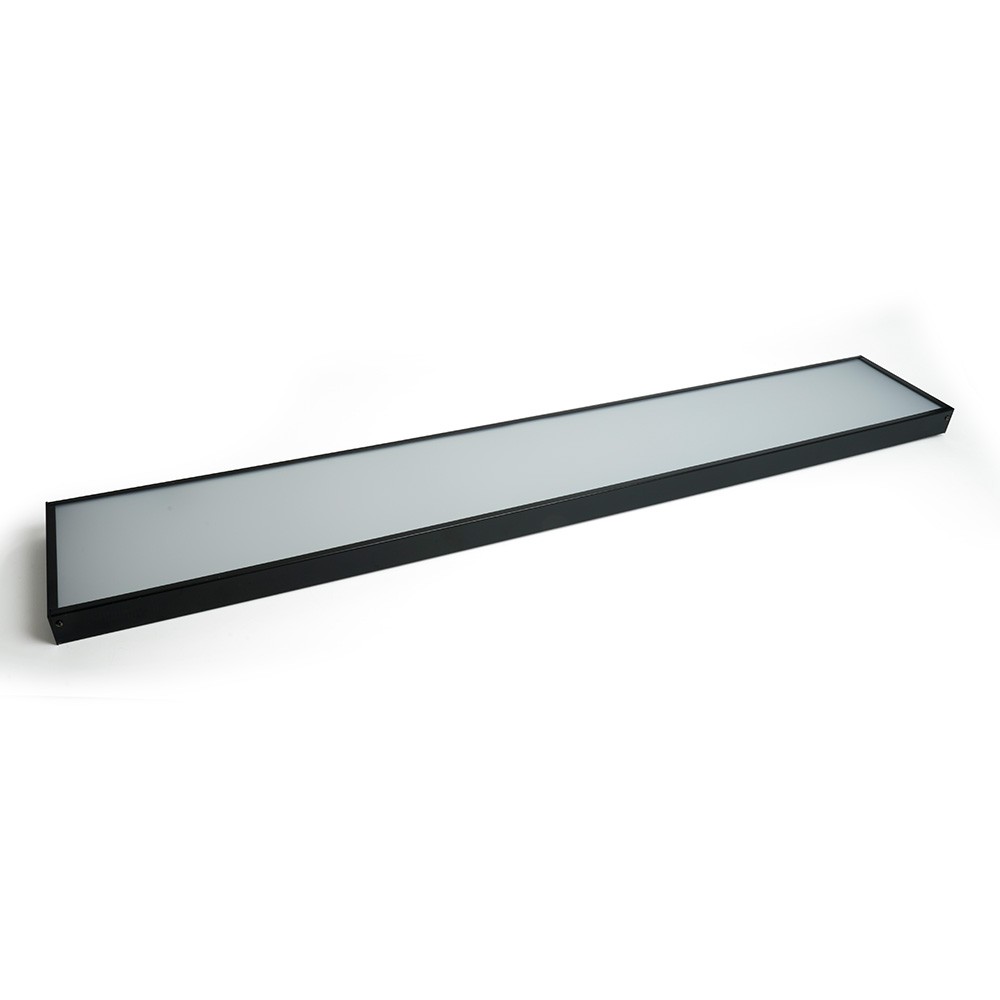Светильник имеет стильный черный корпус из стали с пластиковым рассеивателем, размером 1200x200x40 мм, что позволяет ему гармонично вписаться в современный интерьер. Благодаря защитному классу IP20, светильник прекрасно подходит для использования в сухих помещениях внутри дома или офиса. Долгий срок службы и энергоэффективность LED-технологий делают его экономичным и выгодным решением для освещения. Устанавливается на любую ровную поверхность, позволяя использовать его как для основного освещения, так и для контурной подсветки.