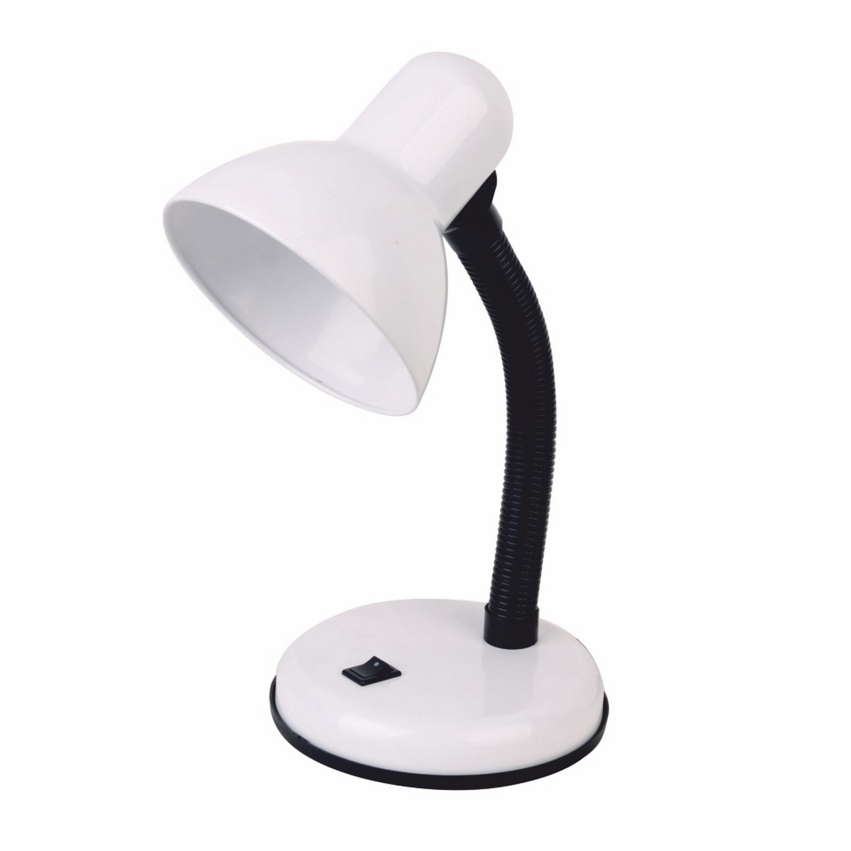 Срок гарантии, (мес): 12 Корпус: металл/пластик. Гибкая ножка-держатель. Кнопка включения/выключения встроена в основание светильника. Провод 1м. Светильник наиболее эффективно работает со светодиодными лампами мощностью до 20Вт, с цоколем Е27. Светильник настольный предназначен для создания комфортных условий освещения рабочей поверхности при использовании дома, в офисах, в учебных заведениях. Кнопка для комфортного включения/выключения светильника встроена в корпус основания; Конструкция настольного светильника позволяет плавно регулировать наклон и поворот плафона; Прочный и легкий корпус идеально подойдет для ежедневного использования; Компактные размеры позволяют удобно разместить светильник даже на небольшом рабочем столе; Светильник изготовлен из негорючих и нетоксичных материалов, прост в установке и эксплуатации