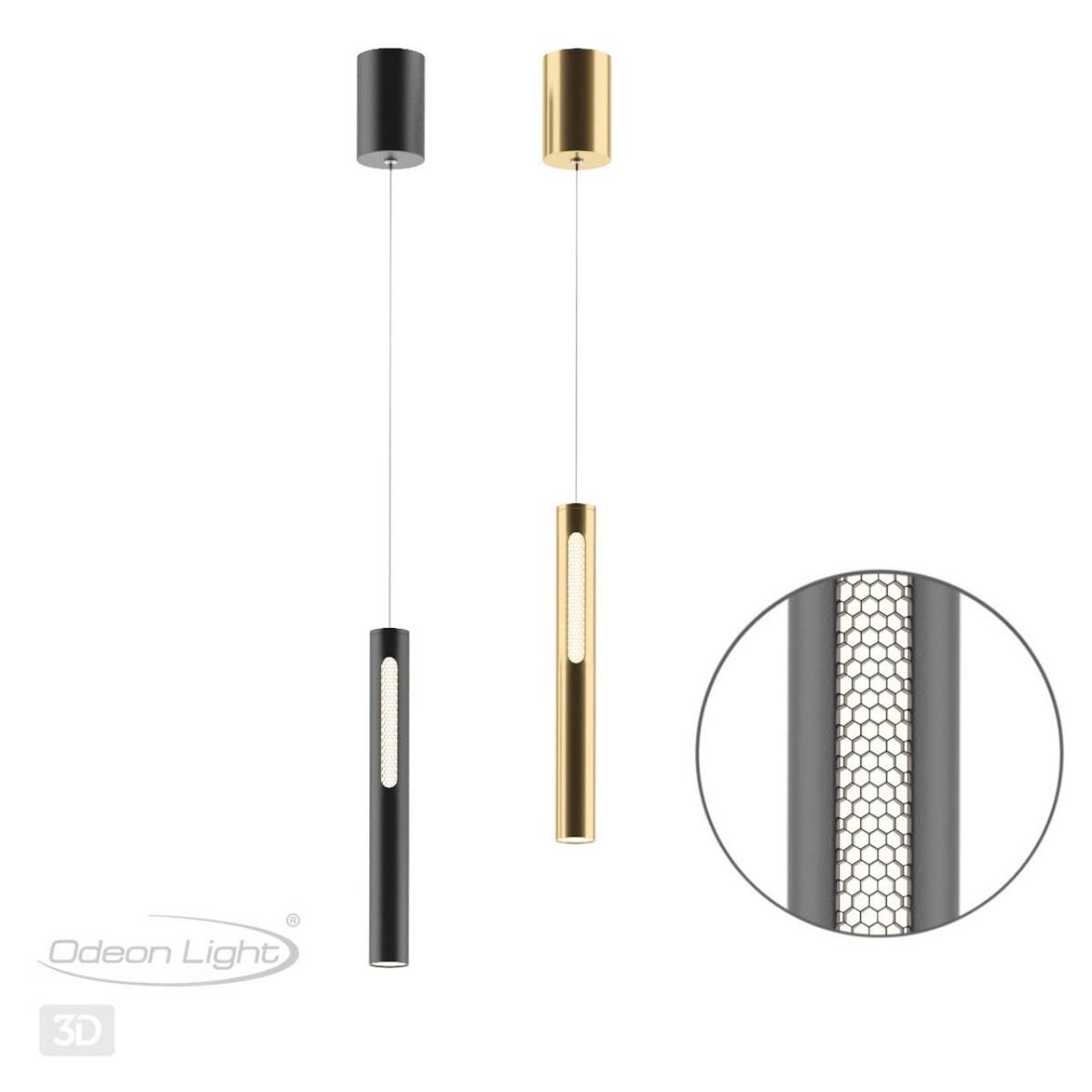 Минималистичный вертикальный подвес Mali в черном цвете с золотыми элементами, в котором используется светофильтр Honey comb, будет отлично смотреться в композиции в минималистичных интерьерах, которые не утрачивают своей популярности.
