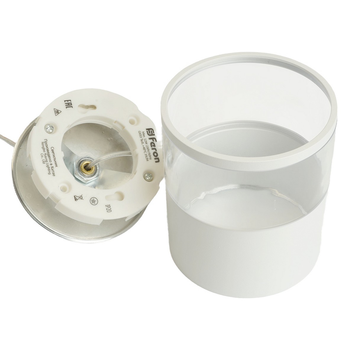 Светильник накладной под лампу, спот (ИПО) FERON HL4548, GX53 12W, 230V, IP20, цвет белый, корпус алюминий, акрил, 85*85*94