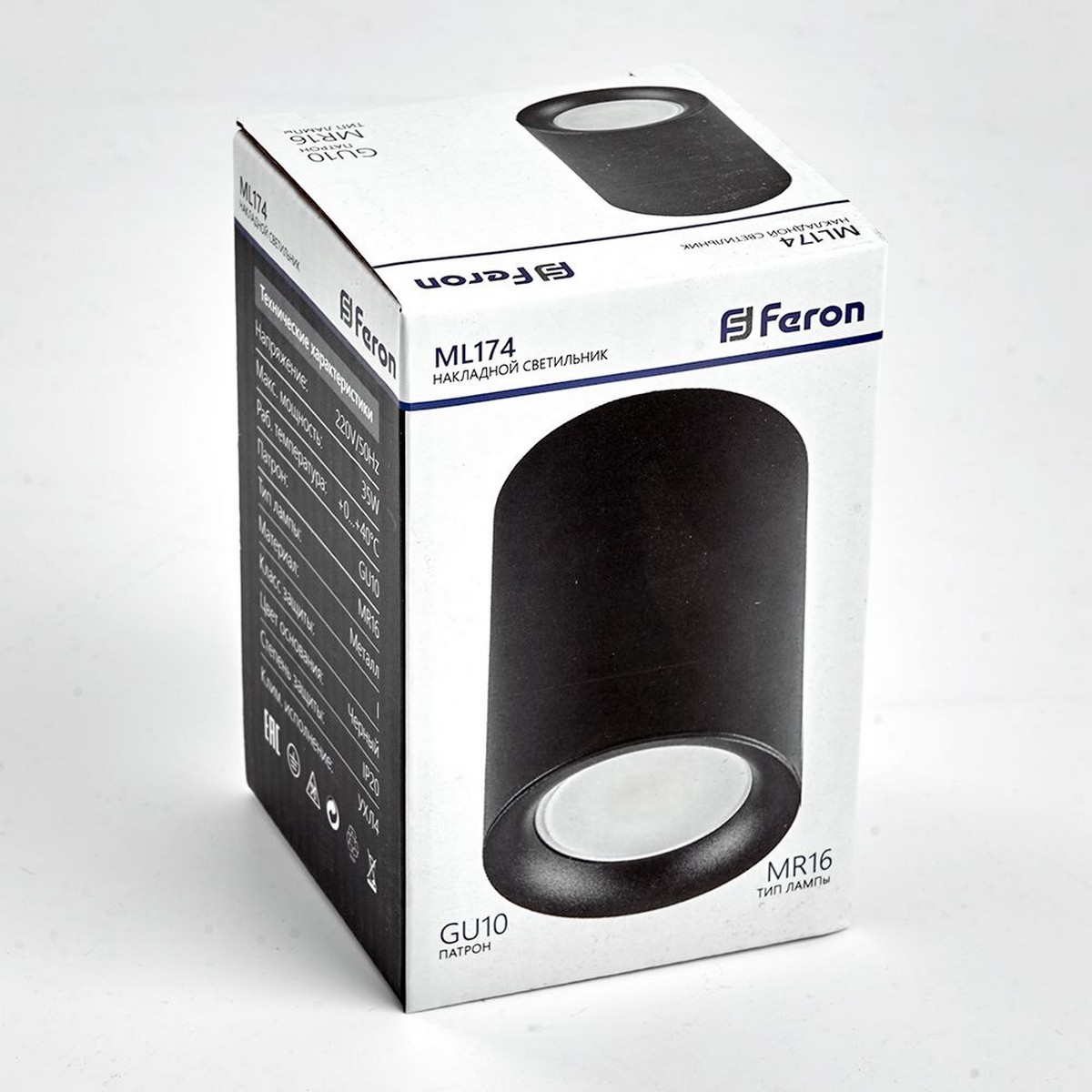 Современный светильник спот создаст уютное освещение в любом интерьере. Можно использовать как основное или акцентное освещение в любом помещении. Модель ML174 от производителя Feron в цвете Черный и типом лампы MR16 которая обеспечивает мощность 35 Ватт обеспечит Вас качественным светом. А универсальный крепеж (в комплекте) позволяет установить светильник на любую поверхность. Светильник накладной под лампу, спот (ИПО) FERON ML174, GU10 35W, 230V, IP20, цвет черный, корпус металл, 70*70*100