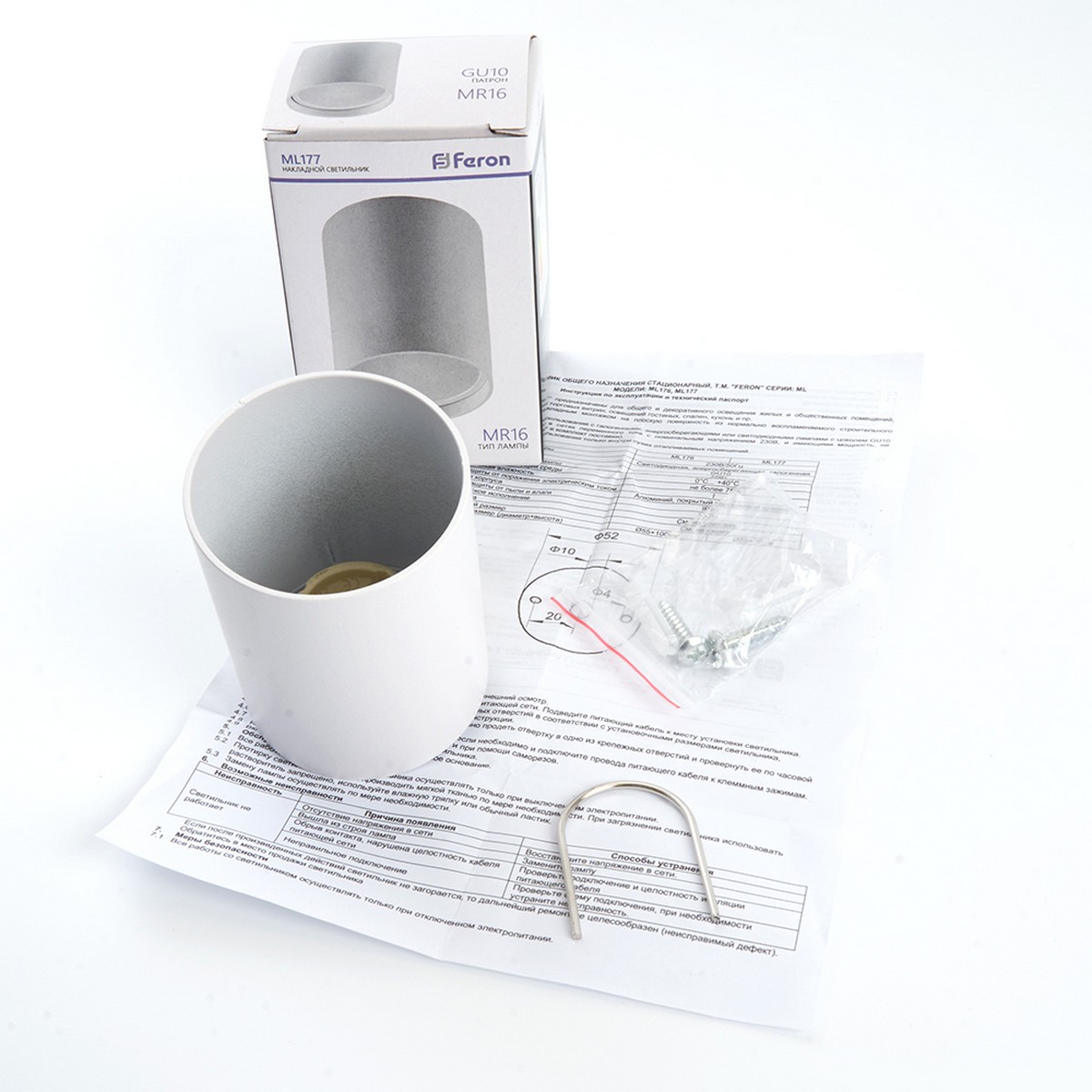Современный светильник спот создаст уютное освещение в любом интерьере. Можно использовать как основное или акцентное освещение в любом помещении. Модель ML177 от производителя Feron в цвете Белый и типом лампы MR16 которая обеспечивает мощность 20 Ватт обеспечит Вас качественным светом. А универсальный крепеж (в комплекте) позволяет установить светильник на любую поверхность. Светильник накладной под лампу, спот (ИПО) FERON ML177, GU10 35W, 230V, IP20, цвет белый, корпус металл, 55*55*70