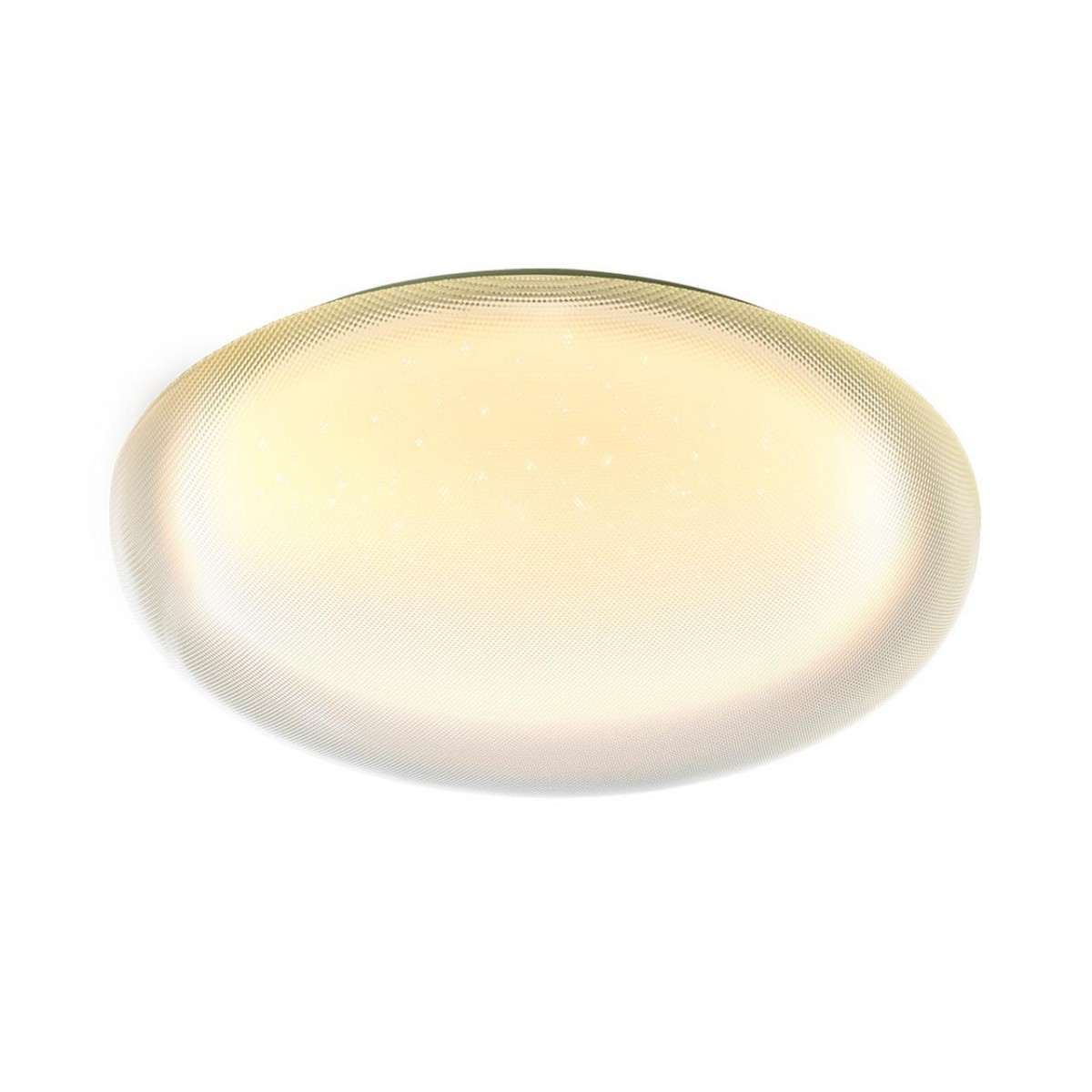 Светильник 7775/DLN линии JOLLY состоит из металлического основания (базы) и пластикового рассеивателя. Материал рассеивателя - высококачественный акрил белого цвета с глянцевой поверхностью, обеспечивающий светильнику равномерное рассеивание и хорошее светопропускание. Форма плафона: круглая, декорирована прозрачными точками, придающими включенному светильнику красивый эффект "звездного мерцания" и переливания. Степень защиты IP43 позволяет использовать светильник в определенных зонах влажных помещений. В комплект входит LED модуль с линзами, мощностью 48Вт, которая соответствует лампе накаливания 515Вт. А также переключатель температуры цвета (ССT) на драйвере, с помощью которого осуществляется изменение цветовой температуры 3000/4000/6000К и переход светильника в режим теплого/белого/холодного света. Для установки необходимого режима рекомендуется использовать удлиненный тонкий предмет типа небольшой отвертки.