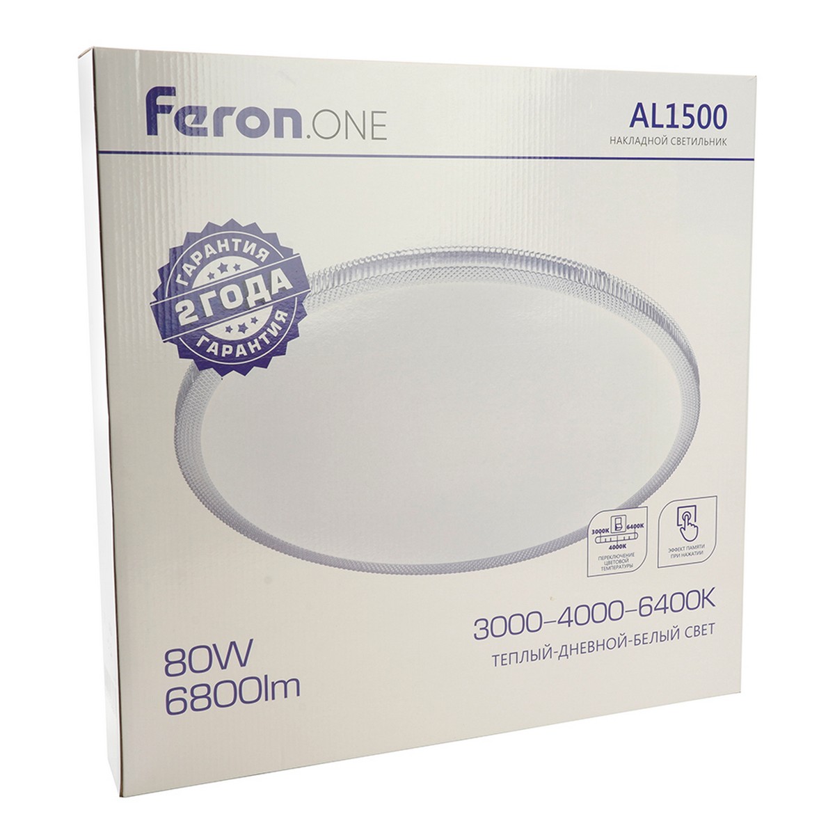 Светильник Feron.ONE AL1500 накладной 80W 3000К-4000К-6400K 51415 по цене 1 833 руб. с фотографией и техническими характеристиками. Для покупки товара нажмите кнопку "Купить" и перейдите в корзину или позвоните по телефону 8 (495) 585 32 60 или 8 (800) 222 23 53.