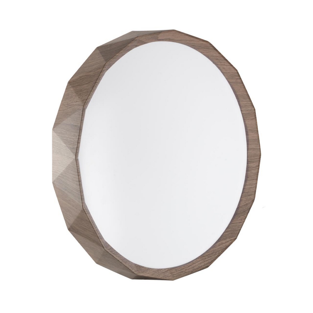 Светильник 7684/DLN линии GARI WOOD состоит из металлического основания (базы) и пластикового рассеивателя. Материал рассеивателя — высококачественный пластик марки PMMA 2.0 белого цвета с матовой поверхностью, обеспечивающий светильнику равномерное рассеивание и хорошее светопропускание. Форма плафона — круглая, декорирована ободом «под дерево» из пластика коричневого цвета. В основание обода со стороны потолка добавлена вставка из светопропускающего пластика, благодаря которой потолок красиво подсвечивается. Степень защиты IP43 позволяет использовать светильник в определенных зонах влажных помещений. В комплект входит LED-модуль с линзами мощностью 48 Вт, соответствующей лампе накаливания 515 Вт. А также переключатель температуры цвета (ССT) на драйвере, с помощью которого осуществляется изменение цветовой температуры 3000/4000/6000 К и переход светильника в режим теплого/белого/холодного света. Для установки необходимого режима рекомендуется использовать удлиненный тонкий предмет типа небольшой отвертки.
