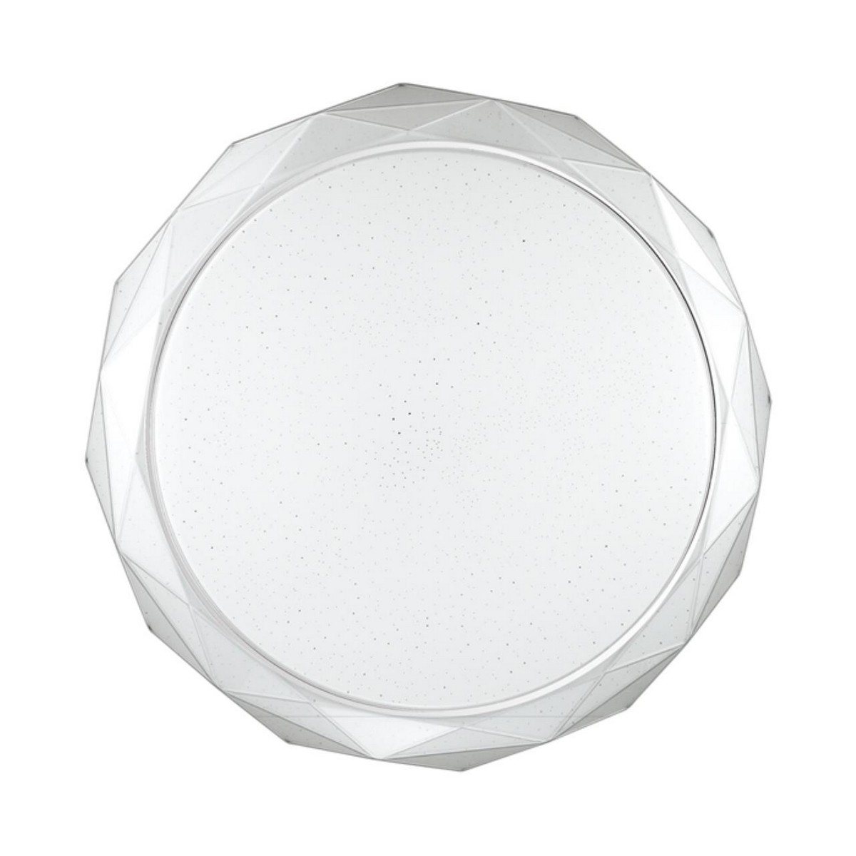 Светильник 2077/DL линии DINA состоит из металлического основания (базы) и пластикового рассеивателя. Материал рассеивателя - высококачественный акрил белого цвета с глянцевой поверхностью, обеспечивающий светильнику равномерное рассеивание и хорошее светопропускание. Форма плафона: круглая, декорирована прозрачным рельефным ободом и рисунком в виде прозрачных точек, которые придают включенному светильнику красивый эффект "звездного мерцания" и переливания. Степень защиты IP43 позволяет использовать светильник в определенных зонах влажных помещений. В комплект входит заменяемый LED модуль с линзами, мощностью 48Вт, которая соответствует лампе накаливания 430Вт. А также пульт ДУ, с помощью которого осуществляется плавное изменение цветовой температуры 3000-6300К, изменение яркости, переход в режим переключения теплого/белого/холодного/ночного света. Светильник имеет функцию "память".