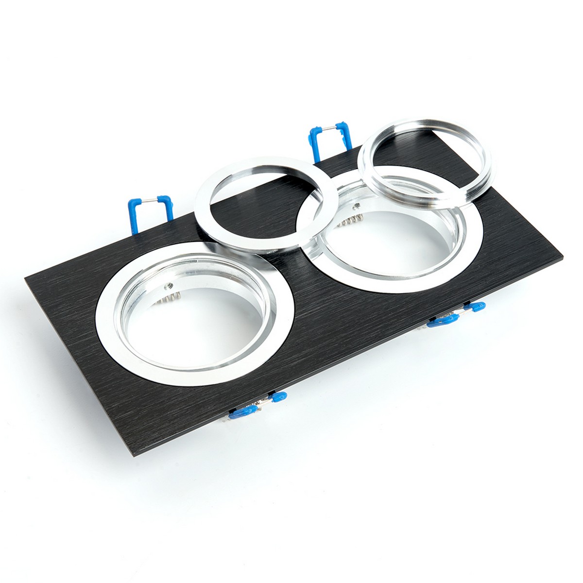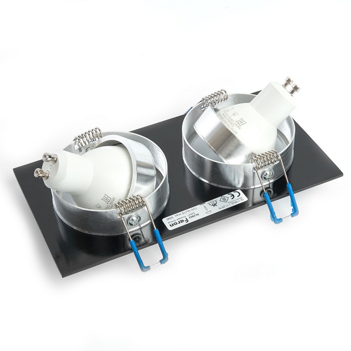 Светильник потолочный встраиваемый (ИВО) FERON DL2802, под лампу MR16 G5.3, черный-хром, прямоугольник, 92*175*25 мм, монтажный диаметр 155мм, корпус металл, поворотный