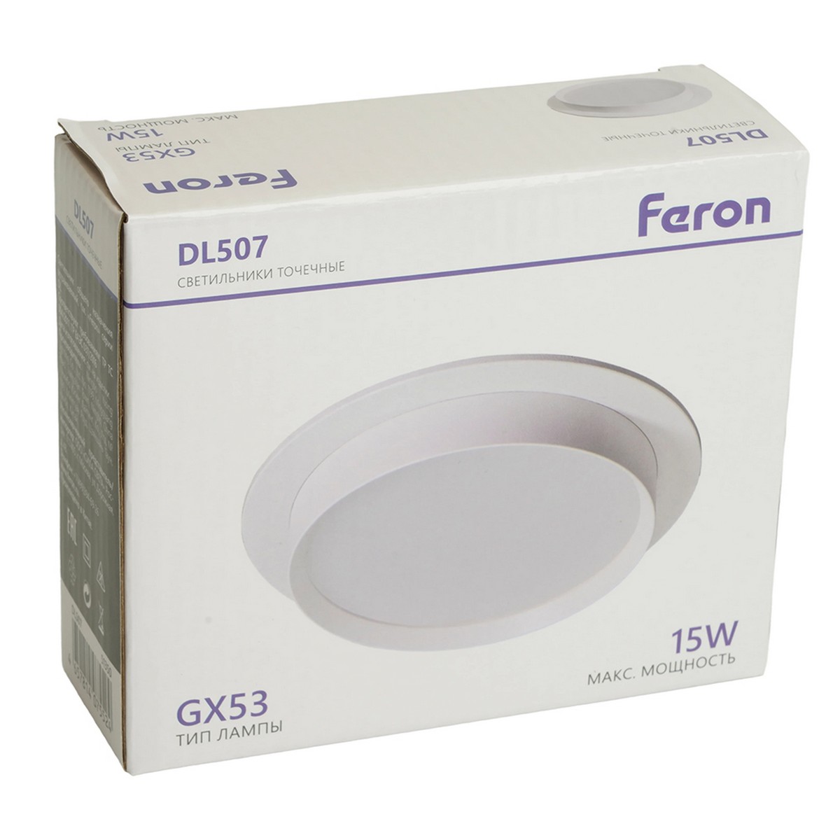 Светильник встраиваемый Feron DL507 потолочный GX53 белый круг 51350 по цене 363 руб. с фотографией и техническими характеристиками. Для покупки товара нажмите кнопку "Купить" и перейдите в корзину или позвоните по телефону 8 (495) 585 32 60 или 8 (800) 222 23 53.