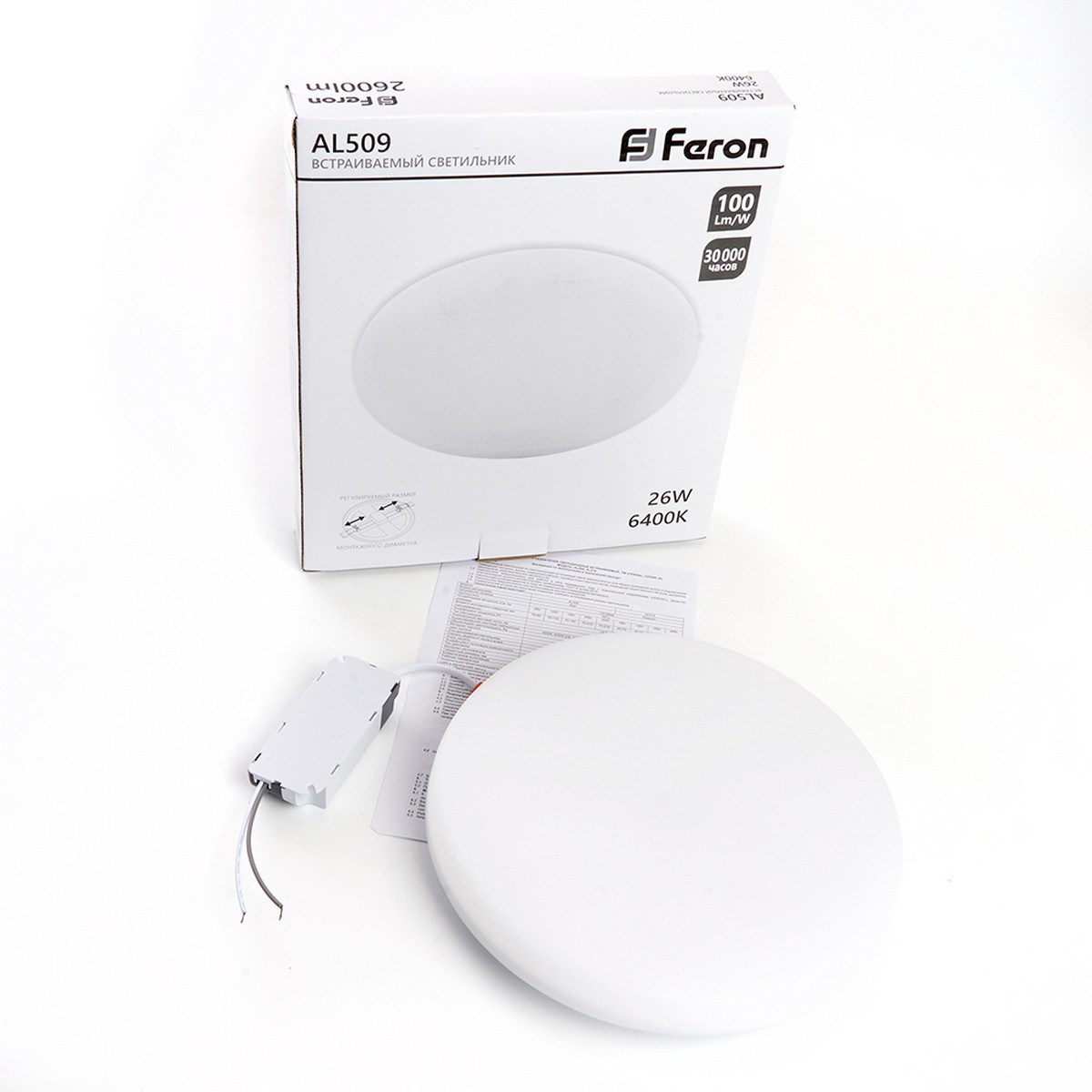 - Драйвер входит в комплект поставки Встраиваемый светильник можно устанавливать в натяжной, подвесной, гипсокартоновый или другие виды потолков. Скрытый монтаж позволяет спрятать основной механизм светильника. Модель из линейки AL509 от производителя Feron с типом лампы Встроенные диоды LED и цветом Белый идеально подойдет для любого интерьера