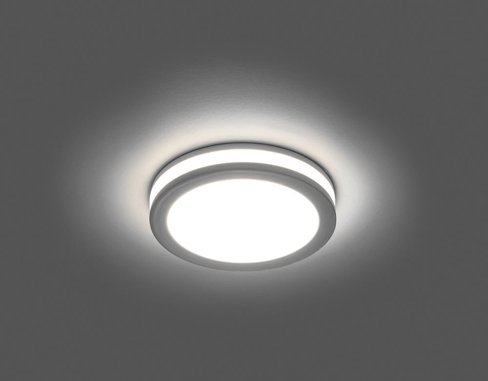 Светильник встраиваемый светодиодный, с белой LED подсветкой (ДВО) FERON AL600, 7W 4000К (белый), 230V, 560Lm, IP20, угол рассеивания 120°, цвет белый, корпус алюминий, рассеиватель матовый акриловый полимер, 80*80*35 мм, монтажн.отв. 55*55 мм.