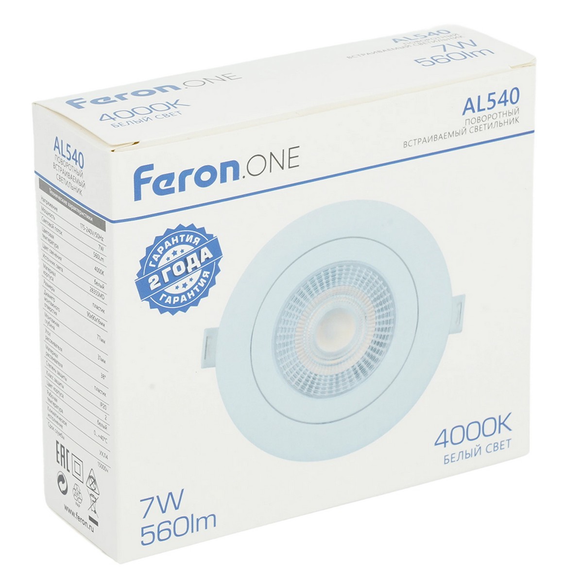 Светодиодный светильник Feron.ONE AL540 встраиваемый 7W 4000K белый "круг" 52047 по цене 127 руб. с фотографией и техническими характеристиками. Для покупки товара нажмите кнопку "Купить" и перейдите в корзину или позвоните по телефону 8 (495) 585 32 60 или 8 (800) 222 23 53.