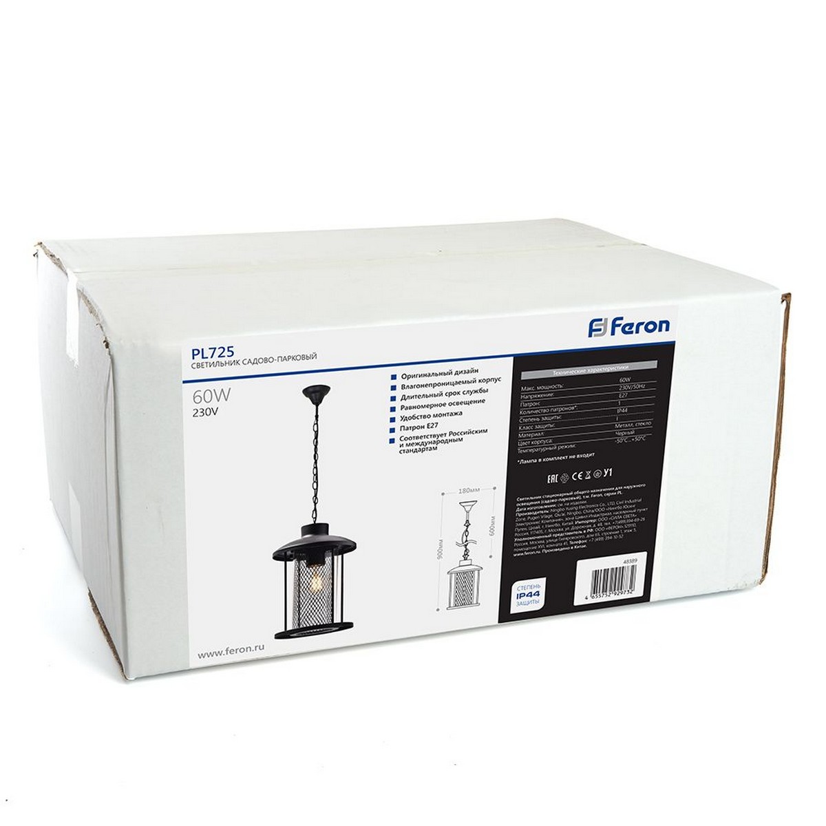 Светильник садово-парковый Feron PL725 на цепочке 60W E27 230V черный 48389 по цене 6 063 руб. с фотографией и техническими характеристиками. Для покупки товара нажмите кнопку "Купить" и перейдите в корзину или позвоните по телефону 8 (495) 585 32 60 или 8 (800) 222 23 53.