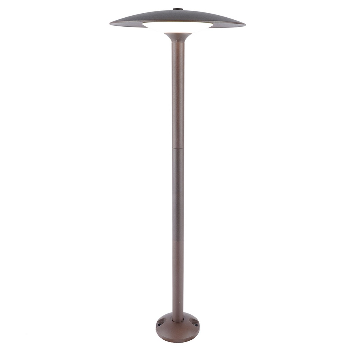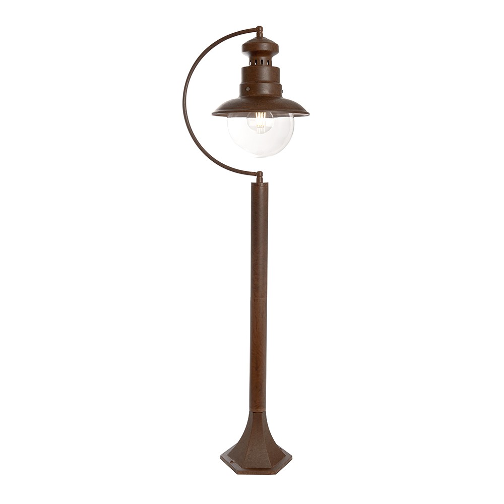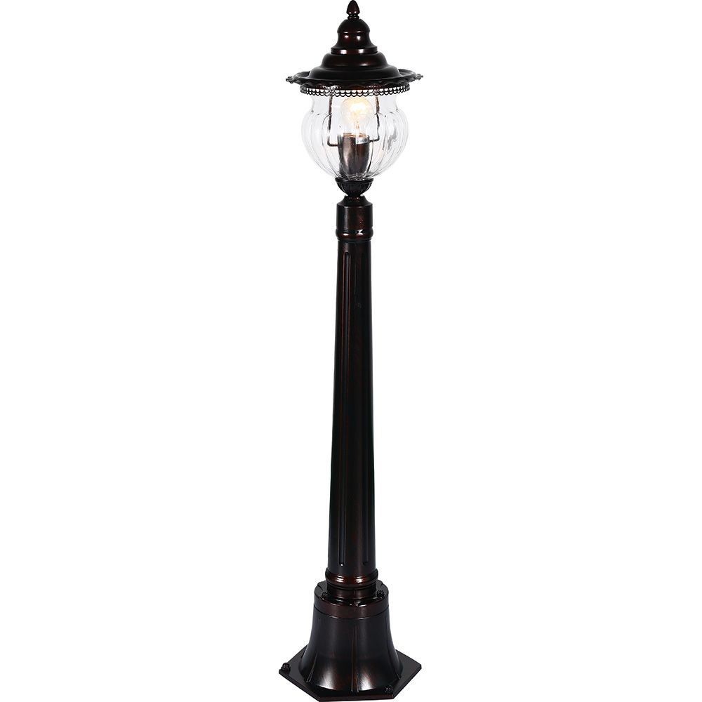 Основной цвет корпуса - коричневый, что позволяет ему гармонично вписаться в любой ландшафтный дизайн, будь то дачный участок или сад при частном доме. Высота светильника составляет 1080 мм, что делает его заметным элементом декора, одновременно выполняющим практическую функцию освещения.
