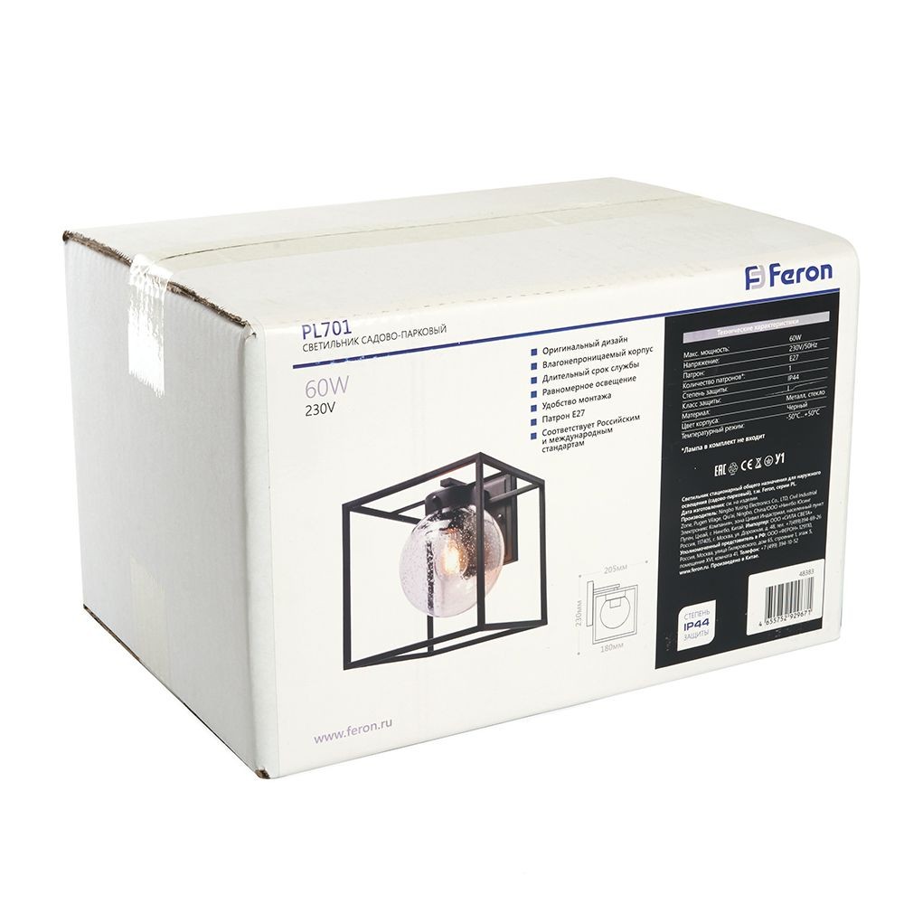 Светильник садово-парковый Feron PL701 на стену вниз 60W E27 230V черный 48383 по цене 3 485 руб. с фотографией и техническими характеристиками. Для покупки товара нажмите кнопку "Купить" и перейдите в корзину или позвоните по телефону 8 (495) 585 32 60 или 8 (800) 222 23 53.