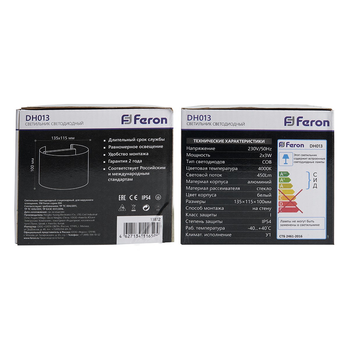 Светильник уличный светодиодный Feron DH013 2*3W 450Lm 4000K черный 11872 по цене 1 401 руб. с фотографией и техническими характеристиками. Для покупки товара нажмите кнопку "Купить" и перейдите в корзину или позвоните по телефону 8 (495) 585 32 60 или 8 (800) 222 23 53.