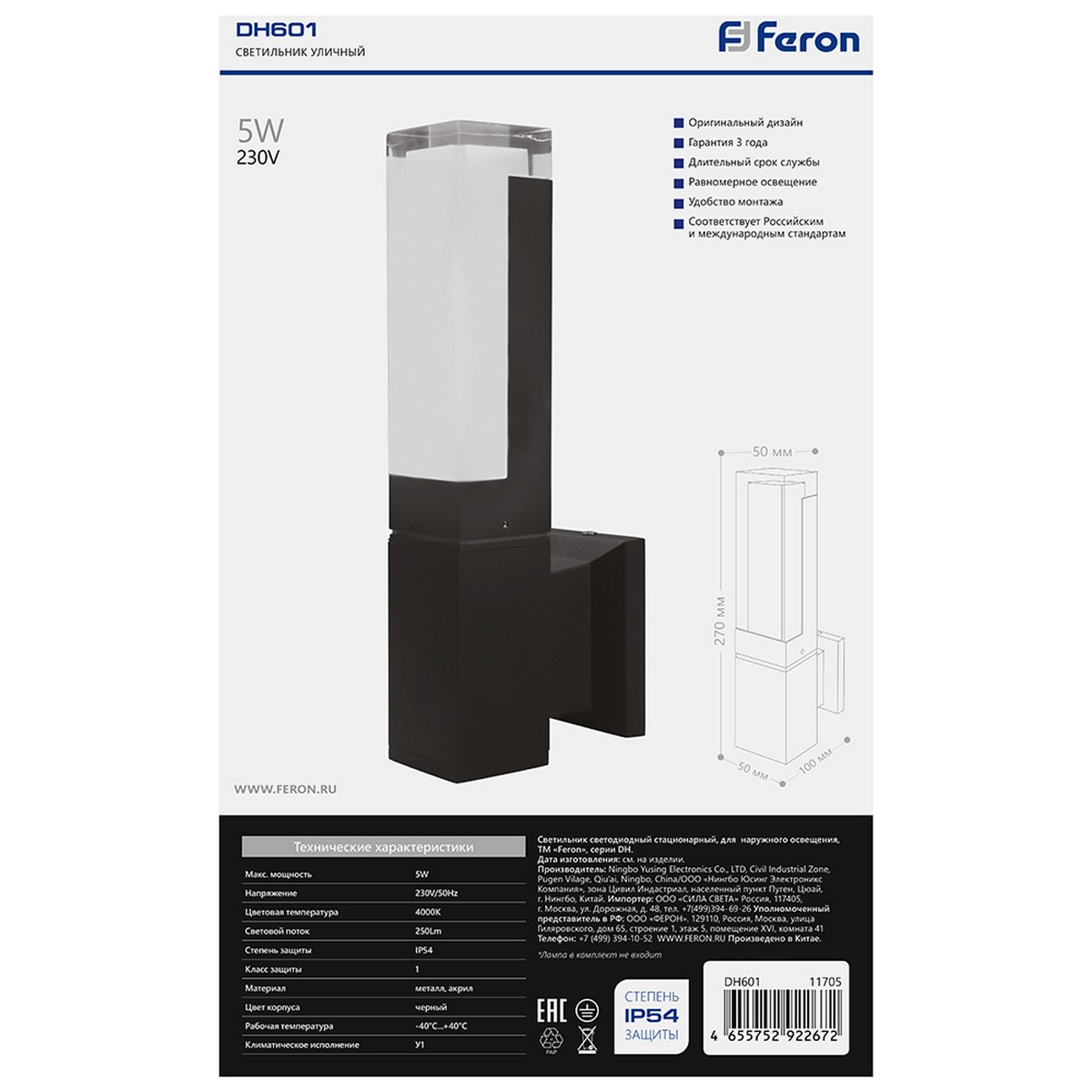 Светильник уличный светодиодный Feron DH601 5W 250Lm 4000K черный 11705 по цене 3 044 руб. с фотографией и техническими характеристиками. Для покупки товара нажмите кнопку "Купить" и перейдите в корзину или позвоните по телефону 8 (495) 585 32 60 или 8 (800) 222 23 53.