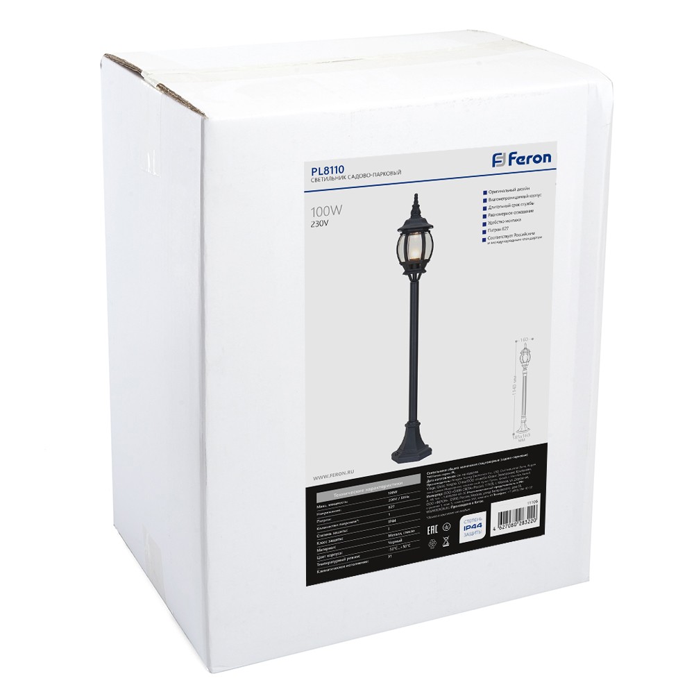 Уличный светильник Feron 8110 столб 100W E27 230V, черный 11106 по цене 4 104 руб. с фотографией и техническими характеристиками. Для покупки товара нажмите кнопку "Купить" и перейдите в корзину или позвоните по телефону 8 (495) 585 32 60 или 8 (800) 222 23 53.