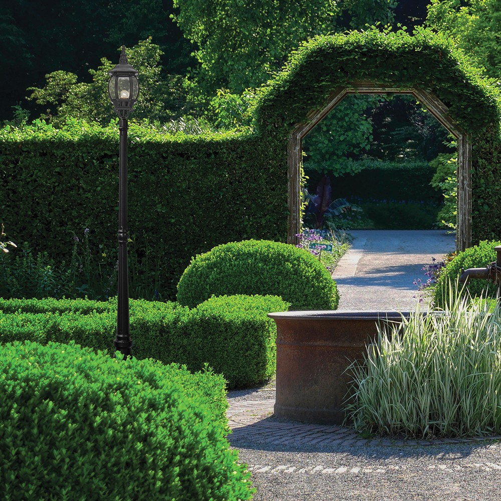 Изготовленный из прочного металла и стекла, этот светильник обладает высокой устойчивостью к коррозии и погодным условиям, что подтверждается классом защиты IP44. Стойкость к внешним факторам гарантирует долгий срок службы. Высота светильника составляет 206 см, обеспечивая широкий радиус освещения. Такой светильник станет не только функциональным устройством, но и важным элементом декора любого участка.