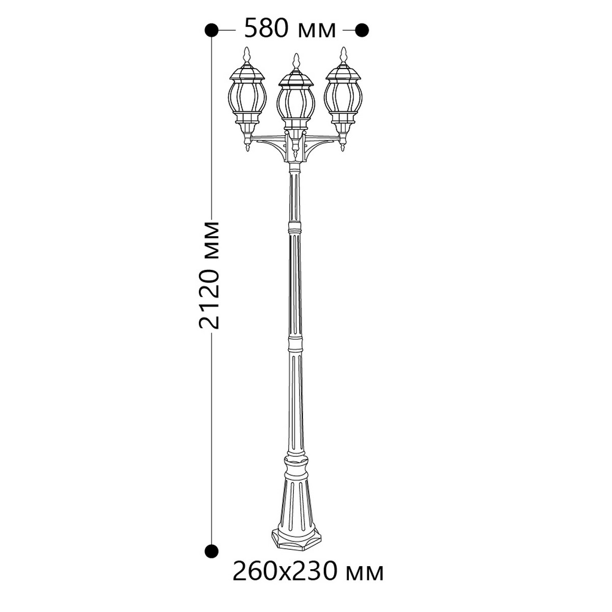 Модель оснащена трехцокольной лампой с базой E27 и мощностью до 300 Вт, обеспечивая яркое и широкое освещение на напряжении 230V. Габаритные размеры составляют 400*580*2120 мм, что делает светильник заметным и функциональным элементом на любой территории. Выбор Feron 8115 — это выбор надежности и стиля для создания идеальной атмосферы на вашем участке.