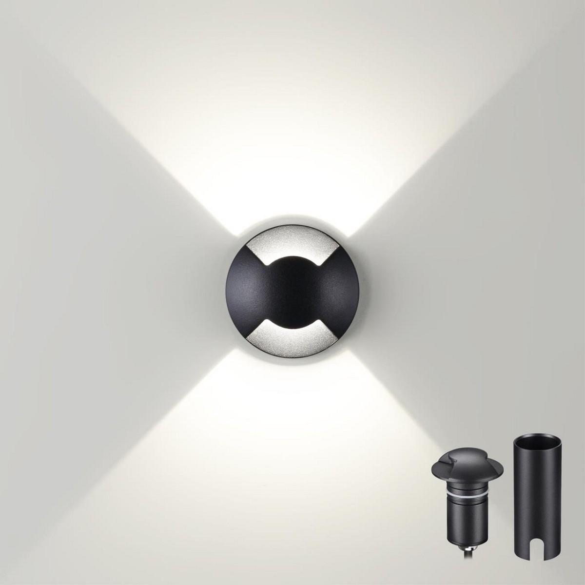 Корпус светильника состоит из алюминия. Это металл, основными  достоинствами которого являются — устойчивость к практически всем видам негативного воздействия окружающей среды, коррозии, небольшой вес, по сравнению с другими видами металла и   экологическая безопасность материала.  Рассеиватель сделан из закаленного стекла. Оно выдерживает температуру от -70 до 250С., а так же в 5-6 раз прочнее обычного. Стакан – пластик. Этот материал имеет высокие эксплуатационные показатели, что объясняется его повышенной стойкостью к механическим повреждениям и защищенностью от факторов внешней среды.  Идеально подходит для точного освещения скульптур, растений, деревьев и вывесок или акцентирования архитектурных деталей. Высокая степень защиты. Простота в установке и многократное перемещение (по необходимости).